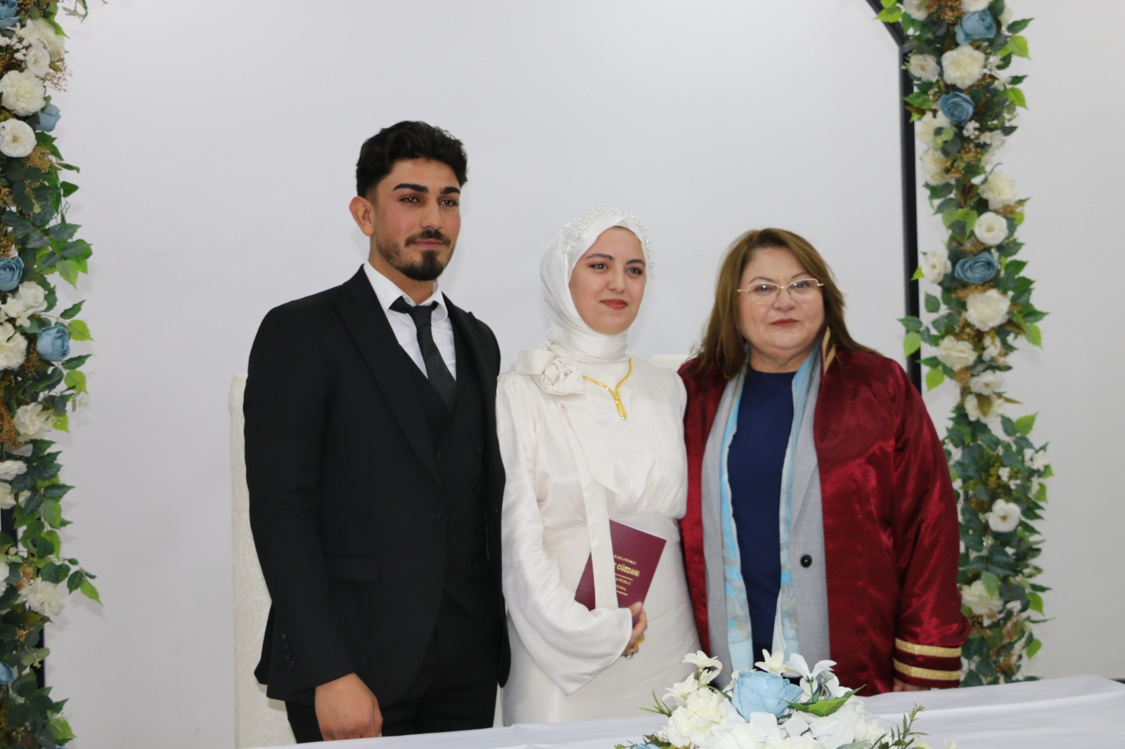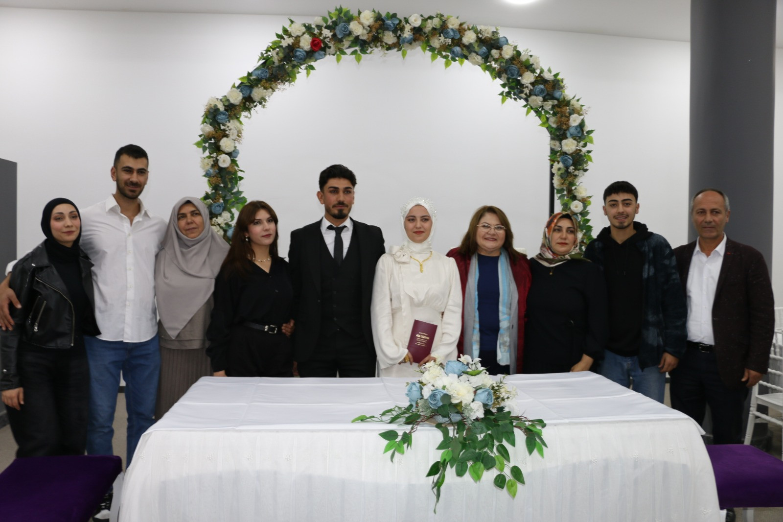 Didim Gençlik merkezi (DİGEM) Düğün Salonunda gerçekleşen nikah töreninde hayatlarını birleştiren Ceren ve Muhammet çiftinin nikahını Didim Belediye Başkanı Hatice Gençay kıydı.