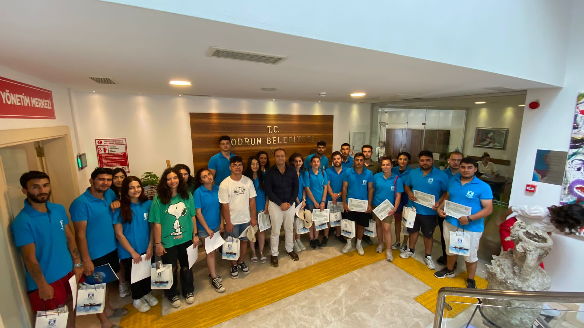 2023 yılı 4’üncü Dönem Gençlik ve Tarım Kampının son gününde Bodrum’daki tarihi ve turistik yerleri gezen öğrenciler, Belediye Başkanı Ahmet Aras’ı makamında ziyaret etti.