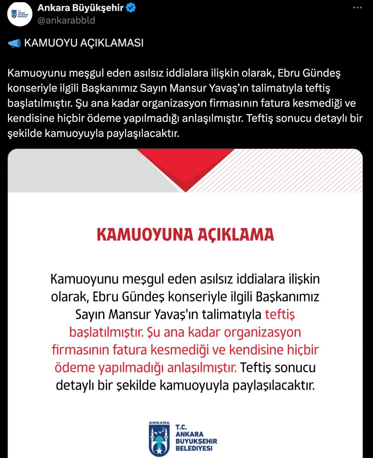 Gündeş'in alacağı söylenen ücreti VeryansınTV tarafından belgeyle haberleştirildi. ABB Başkanı Mansur Yavaş, para ödenmediğini konu ile ilgili tahkikat başlatıldığını bildirdi.