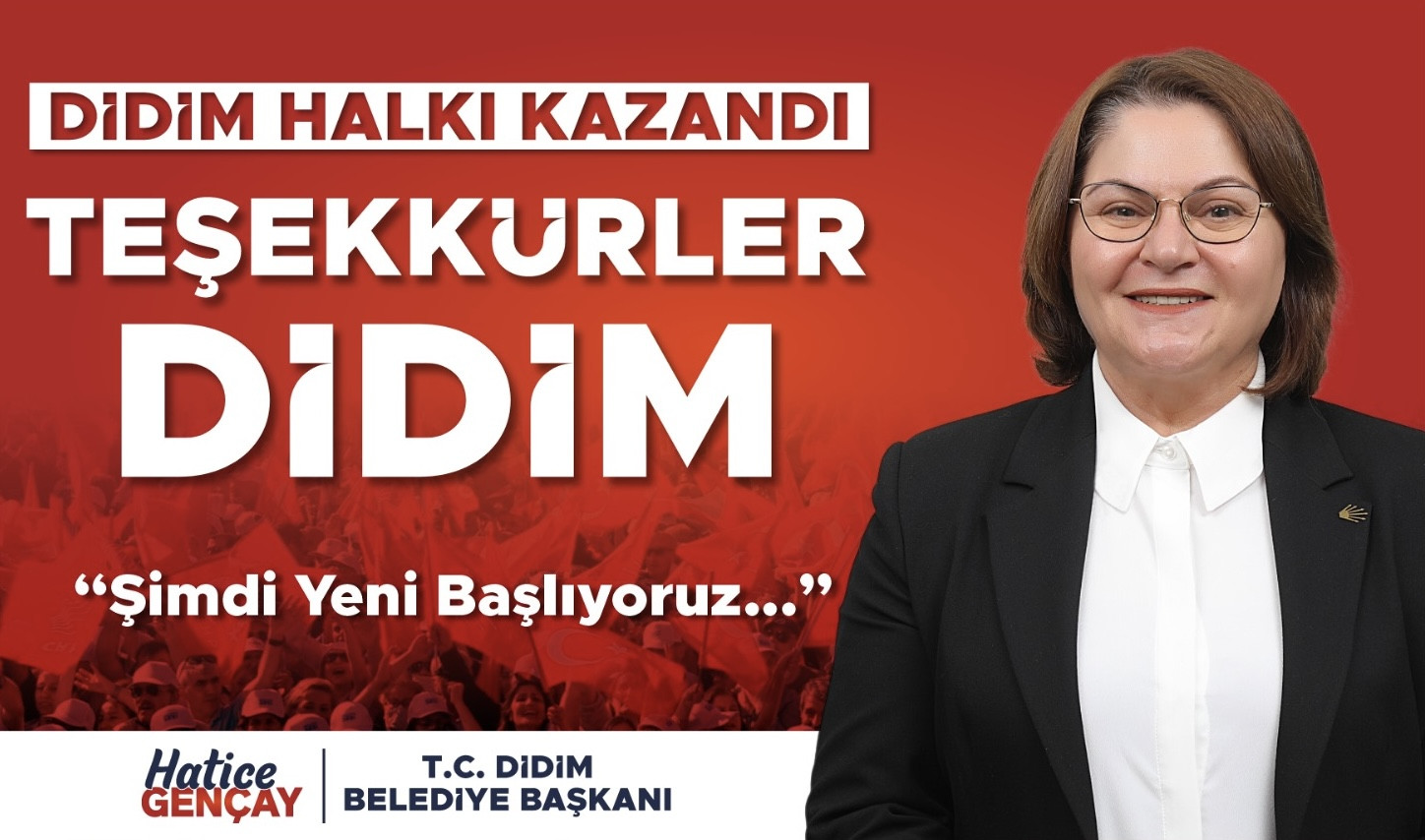 Binlerce partiliye seslenen Didim’in yeni Belediye Başkanı Hatice Gençay kendisine destek veren herkese teşekkür ederken seçim sürecinde çalışmalarında yer alan CHP Didim İlçe yönetimine, İlçe Kadın ve Gençlik kolları başkan ve üyelerinde ayrıca teşekkür etti.