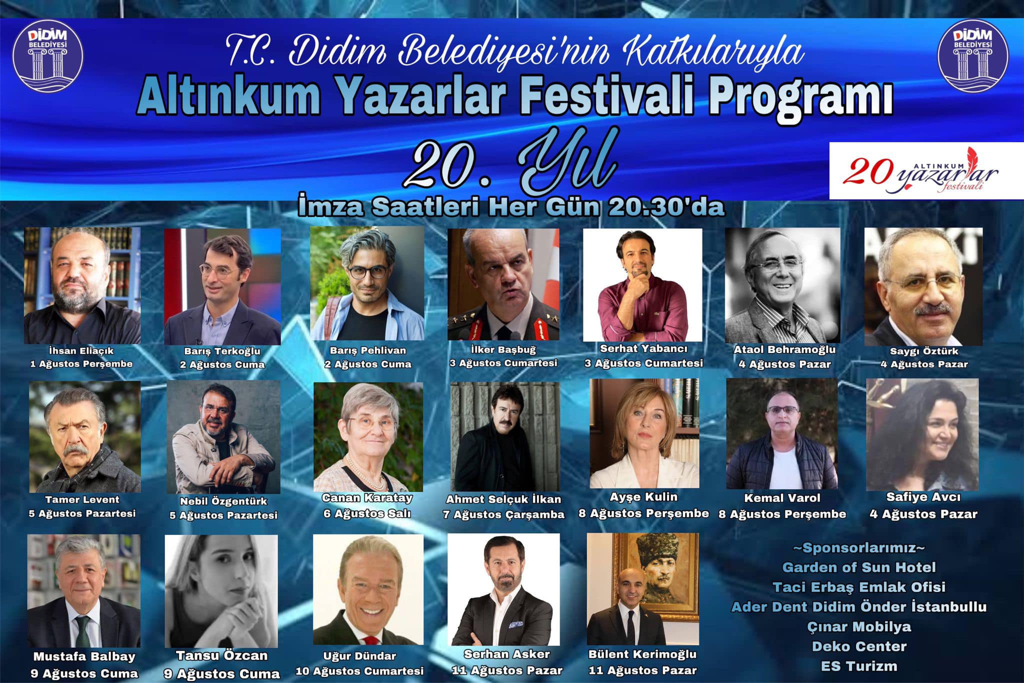 Bu yıl kentimizin önemli turizm noktalarından birisi olan Altınkum Yalı Caddesi’nde 20.kez kapılarını açan festival edebiyat ve sanat dünyasını usta kalemlerini, hayranlarıyla buluşturuyor.