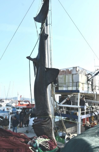Ağlara takılan köpekbalığının cinsinin “Güneşlenen Köpekbalığı” olarak da bilinen Büyük Camgöz olduğu bilgisine ulaşıldı.