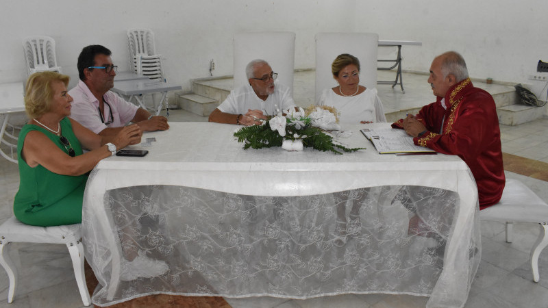 Çiftin nikahını, Didim Belediyesi'nin kıdemli Evlendirme Memuru İrfan Salan kıyarken, şahitliklerini yakın arkadaşları Zekiye Sarışın ile Yusuf Mehmet Sarışın yaptı.