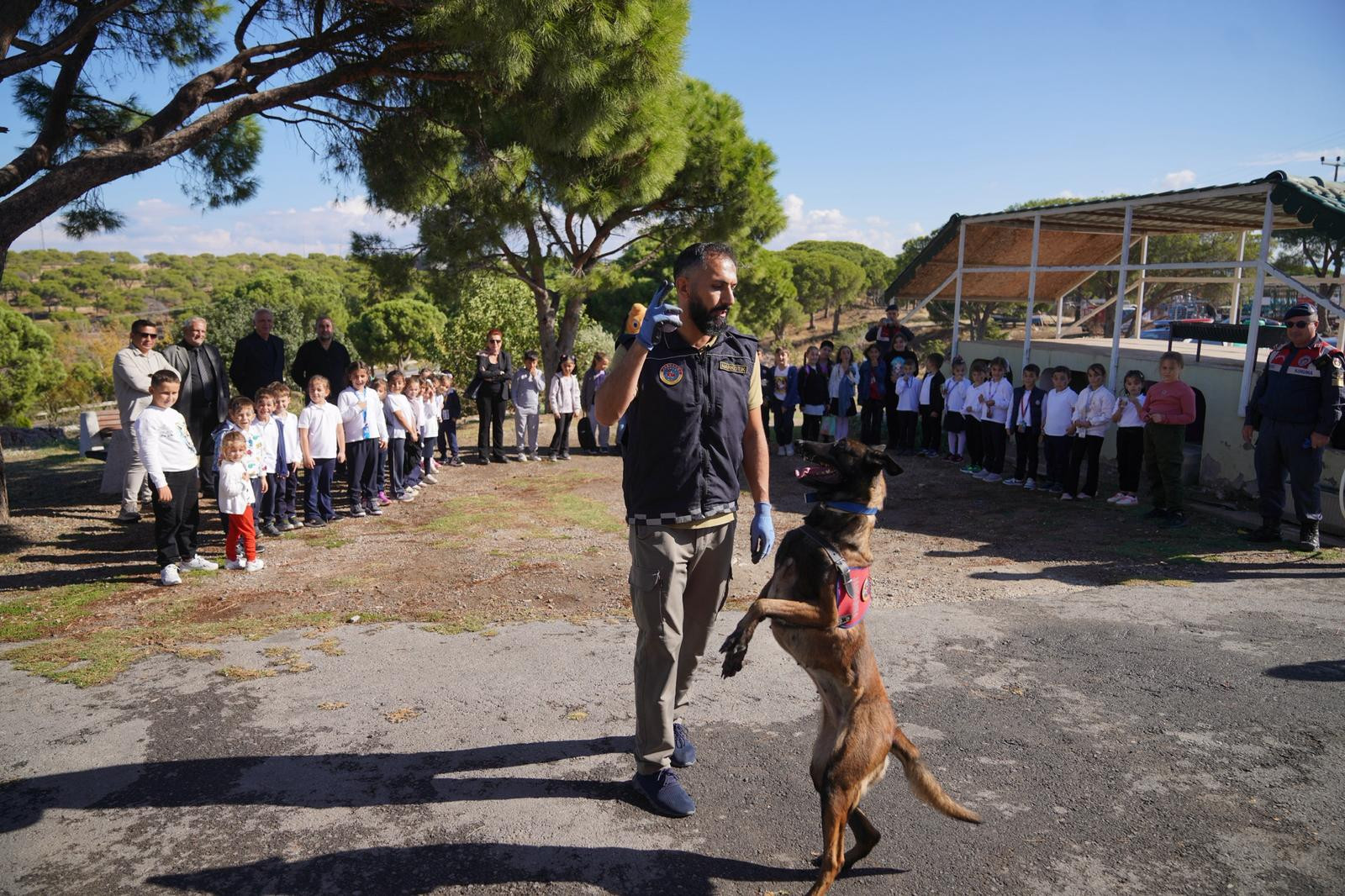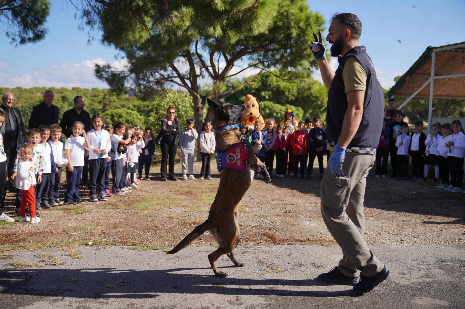 Jandarma’nın arama kurtarma köpeği Çilek, yaptığı gösterilerle çocukların sevgilisi oldu.