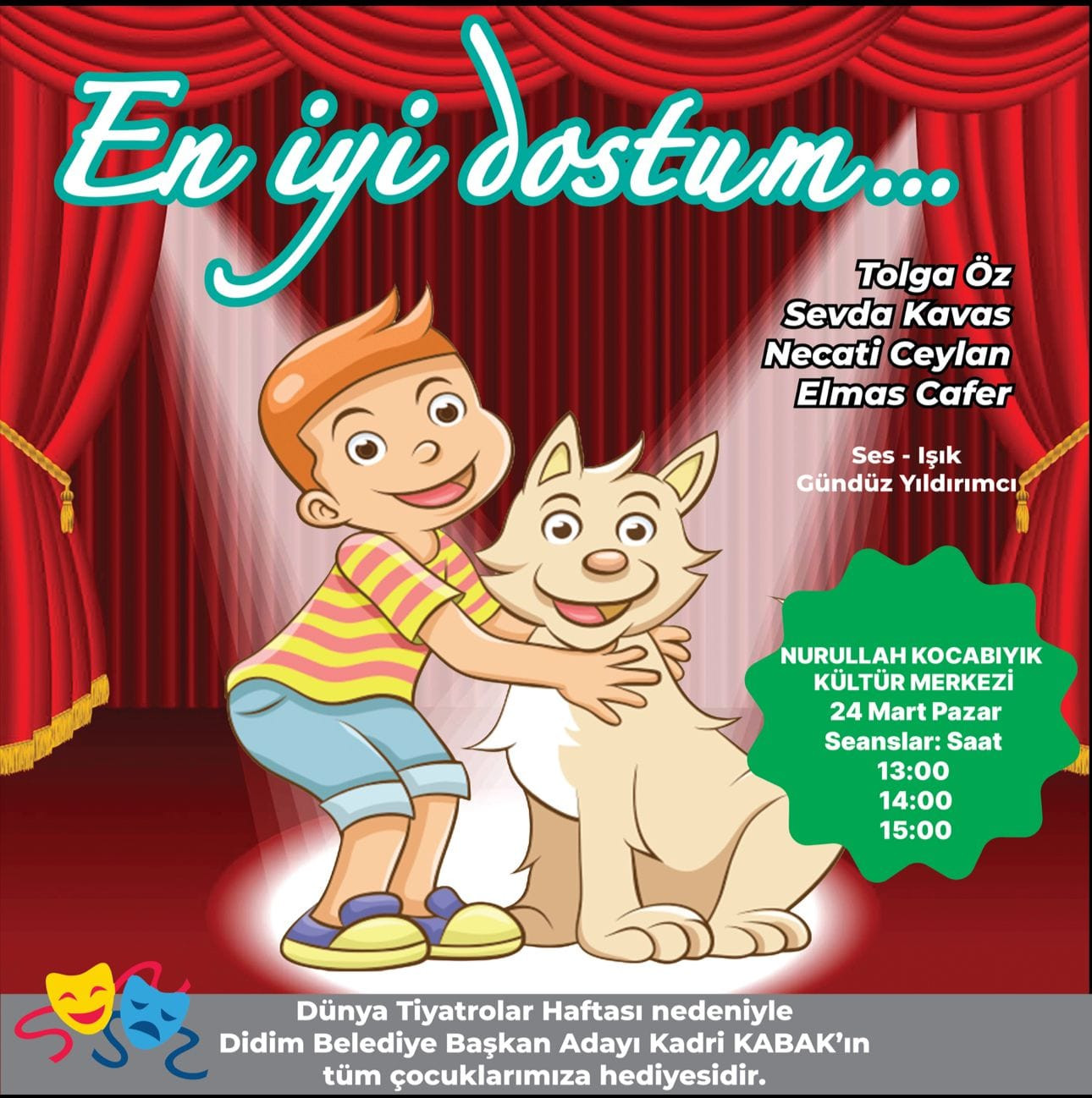 Didim Ticaret Odası Aytaç-Nurullah Kocabıyık Kültür Merkezi'nde bugün 13.00-14.00 ve 15.00'te 3 seans olarak sahnelenen "En İyi Dostum" adlı oyuna, ilgi büyük oldu.