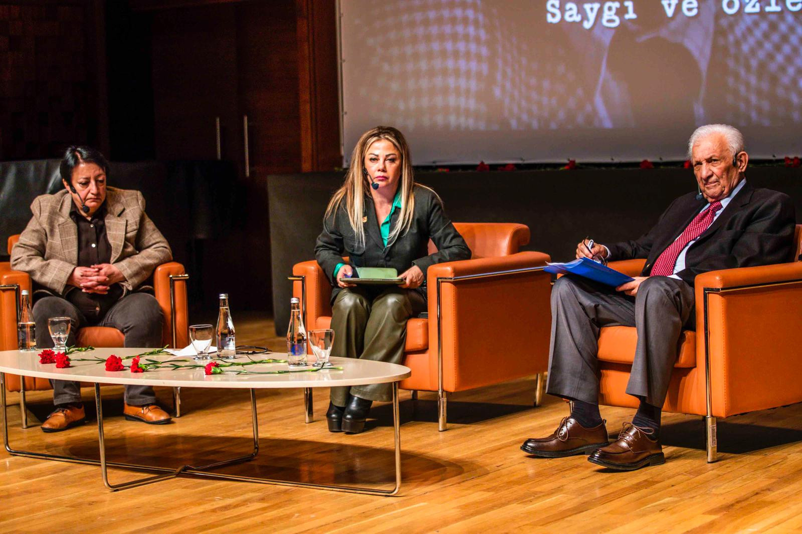 Anma programının söyleşi bölümünde gazetecilik, demokrasi ve aydınlanma mücadelesi Uğur Mumcu’nun mirası üzerinden ele alındı. Söyleşinin moderatörlüğünü İzmir Gazeteciler Cemiyeti Başkanı Dilek Gappi üstlenirken, Cumhuriyet Vakfı Başkanı Alev Coşkun ve Cumhuriyet Gazetesi Yazarı Miyase İlknur konuşmacı olarak yer aldı.