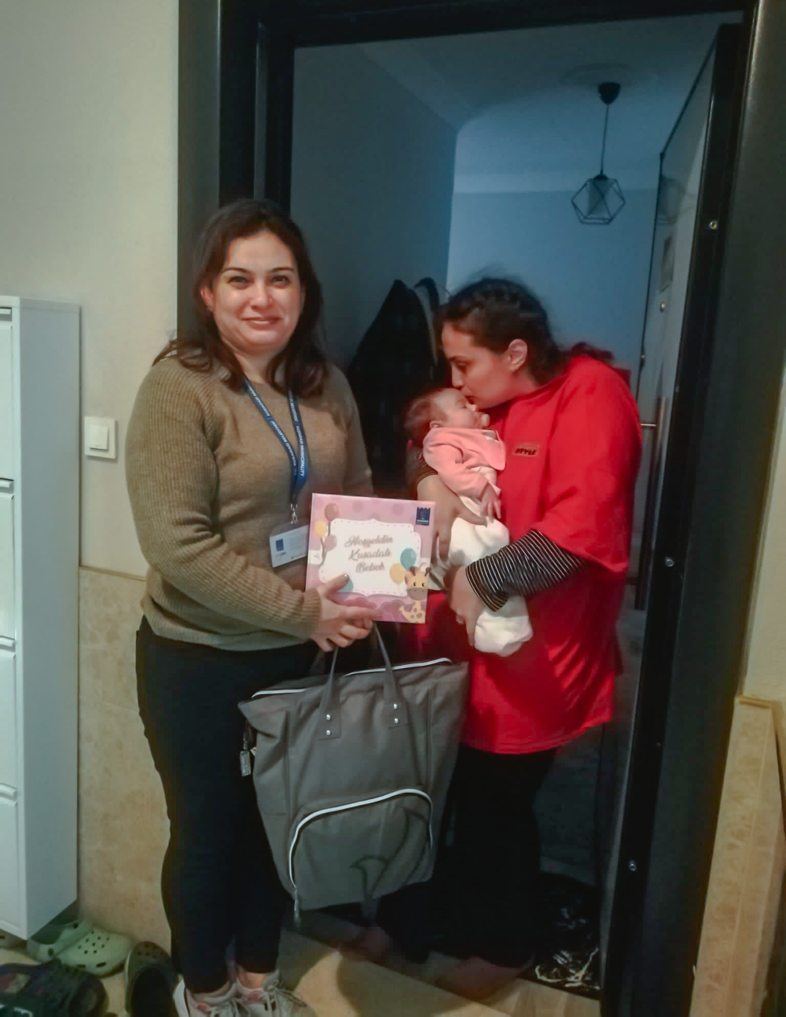 Kuşadası Belediyesi tarafından yaşama geçirilen Hoş Geldin Bebek projesi kapsamında Sosyal Yardım İşleri Müdürlüğü ekipleri tarafından bebeklere içerisinde battaniye, bebek şampuanı ve bezi, termometre, tırnak makası, biberon, emzik ve yeni doğan takımının bulunduğu özel olarak hazırlanmış çantalar hediye ediliyor.