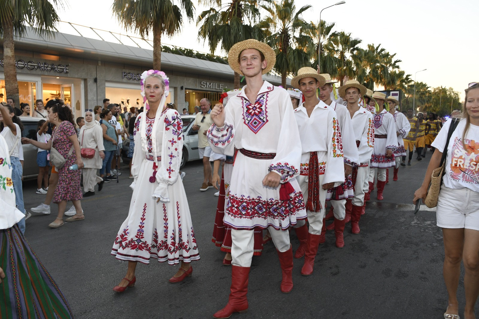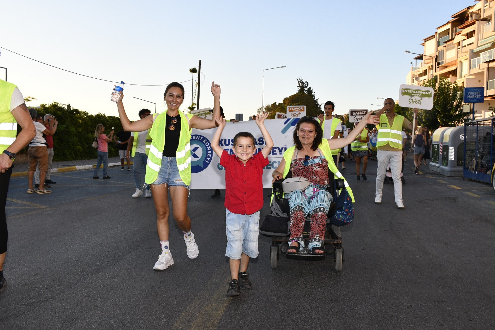 Dostluk ve Barış Meydanı arasında bir kortej yürüyüşü düzenlendi. Derneklerin, vakıfların, dans okullarının, jonglörlerin, orkestraların ve gösteri topluluklarının birbirinden ilginç ve renkli kostümlerle katıldığı kortej yürüyüşü büyük ilgi gördü. Kuşadası Belediye Başkanı Ömer Günel’in de