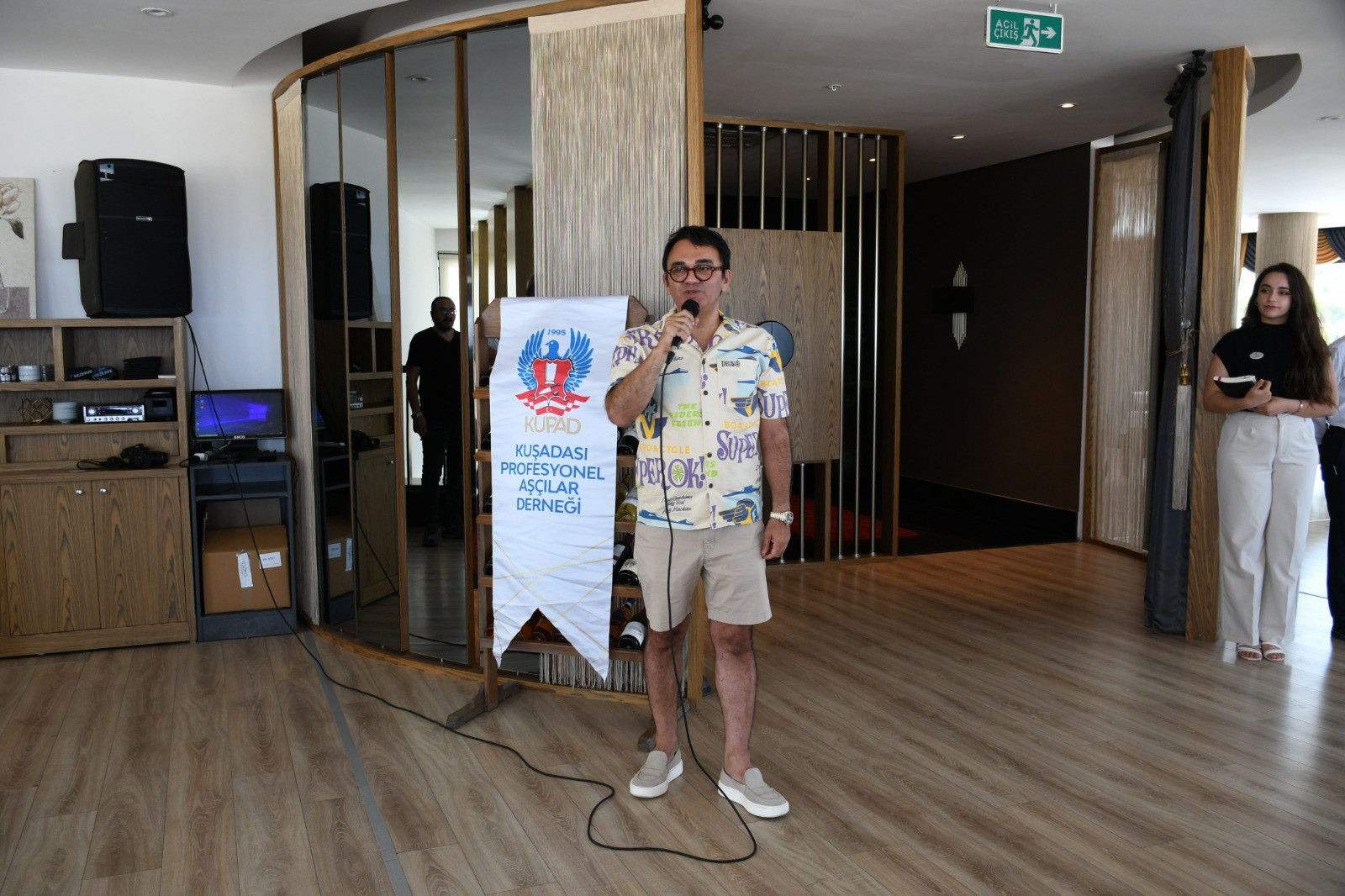 Kuşadası Belediyesi Başkan Vekili Tibet Özer ise “Başkanımız Ömer Günel göreve geldiği günden bu yana geçen sürede kentimizdeki turizm çeşitliliğini artırmak için kurumlarla iş birliği içerisinde çalışıyor. Kuşadası Profesyonel Aşçılar Derneği gerçekten kentimizdeki en önemli STK’ların başında geliyor. Bundan 4 sene önce seçim aşamasındayken beraber yaptığımız toplantılarda seçilirsek birçok organizasyonda paydaş olacağız dediğimizde dernek üyelerinin gözündeki heyecan bizi çok motive etmişti. Şimdi bakınca yapılan birçok organizasyonda o kadar önemli katkıları var ki inanılmaz bir enerji ve özveriyle çalışıyorlar. En son yapmış olduğumuz Kuşadası Sokak Festivali organizasyonunda bizlere büyük destek oldular. Kendilerine bu enerjileri, yaklaşımları ve yaşadığımız kent adına koymuş oldukları katkılardan dolayı çok teşekkür ediyorum” diye konuştu.