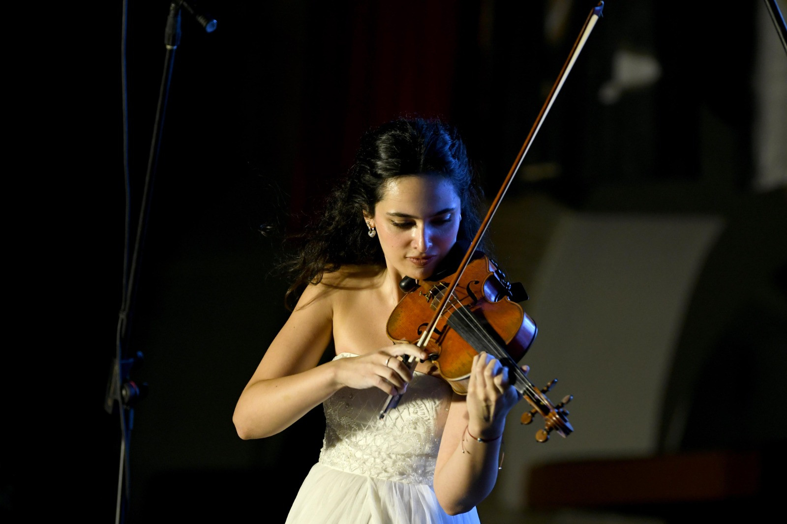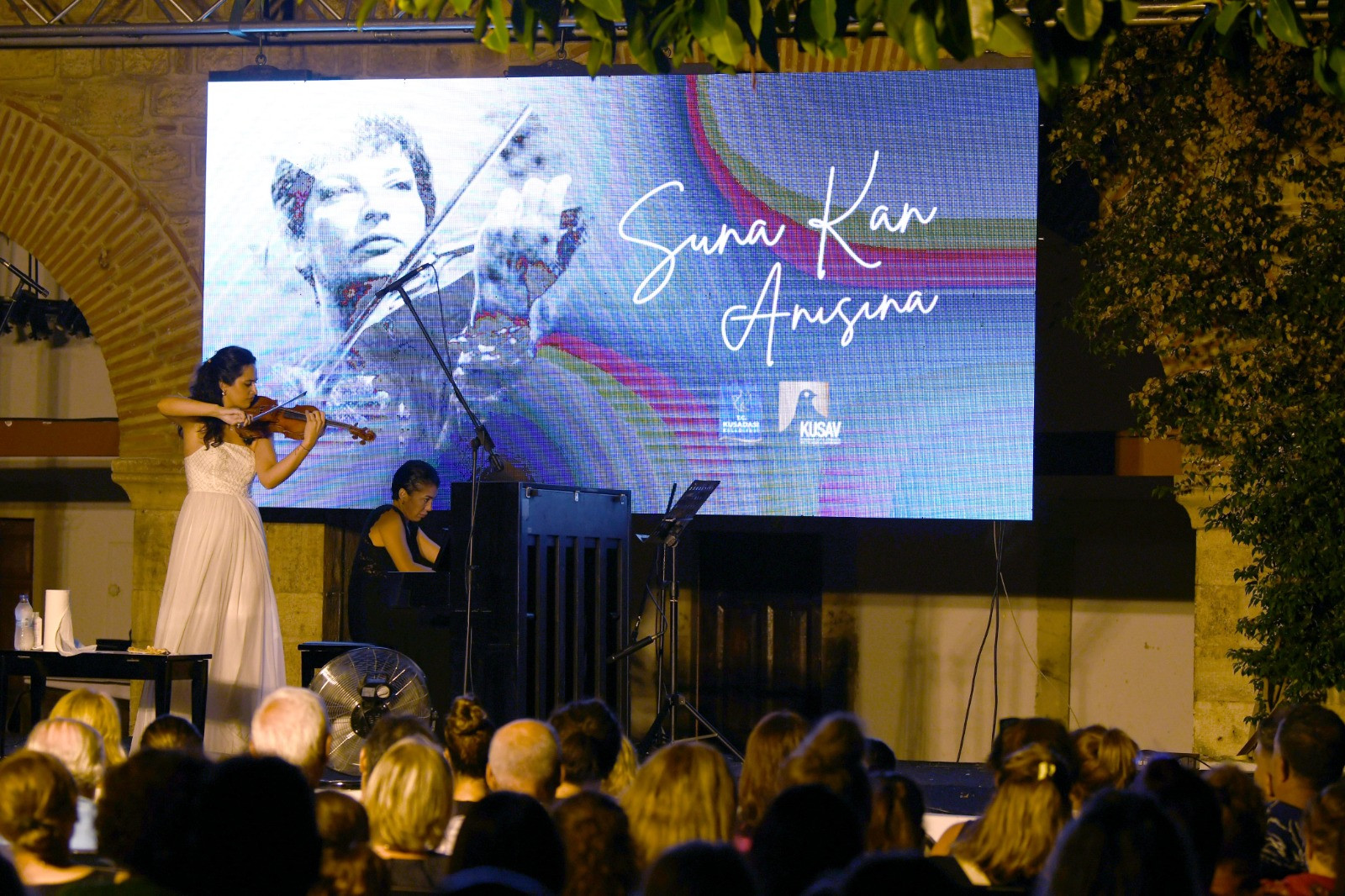 Kuşadası Belediyesi ile Kuşadası Altın Güvercin Kültür Sanat ve Tanıtım Vakfı (KUSAV) iş birliğinde gerçekleştirilen konserde, kemanıyla izleyenleri büyüleyen sanatçıya piyanoda Tuğçe Doruk eşlik etti.