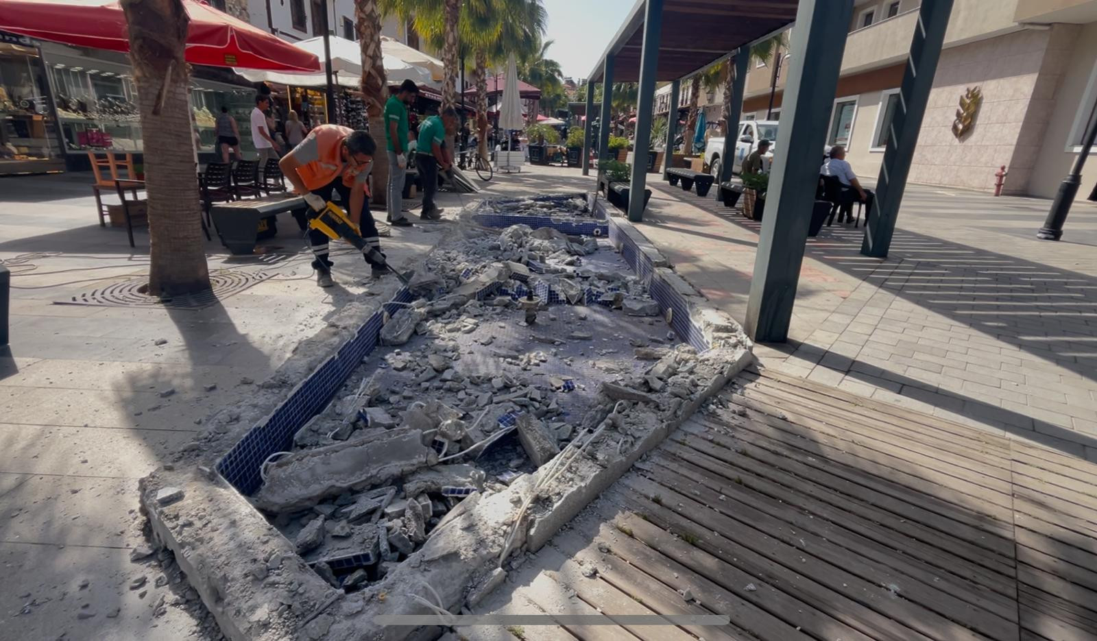 Başkan Ömer Günel’in göreve gelmesinin ardından 2021 yılında alt ve üst yapısı bütünüyle yenilenerek sağlıklı, modern ve estetik hale getirilen turistik çarşıların zemin ve peyzajında meydana gelen bozulmaların giderildiği çalışma kapsamında Barbaros Hayrettin Paşa Bulvarı üzerinde yer alan süs havuzu kaldırıldı.