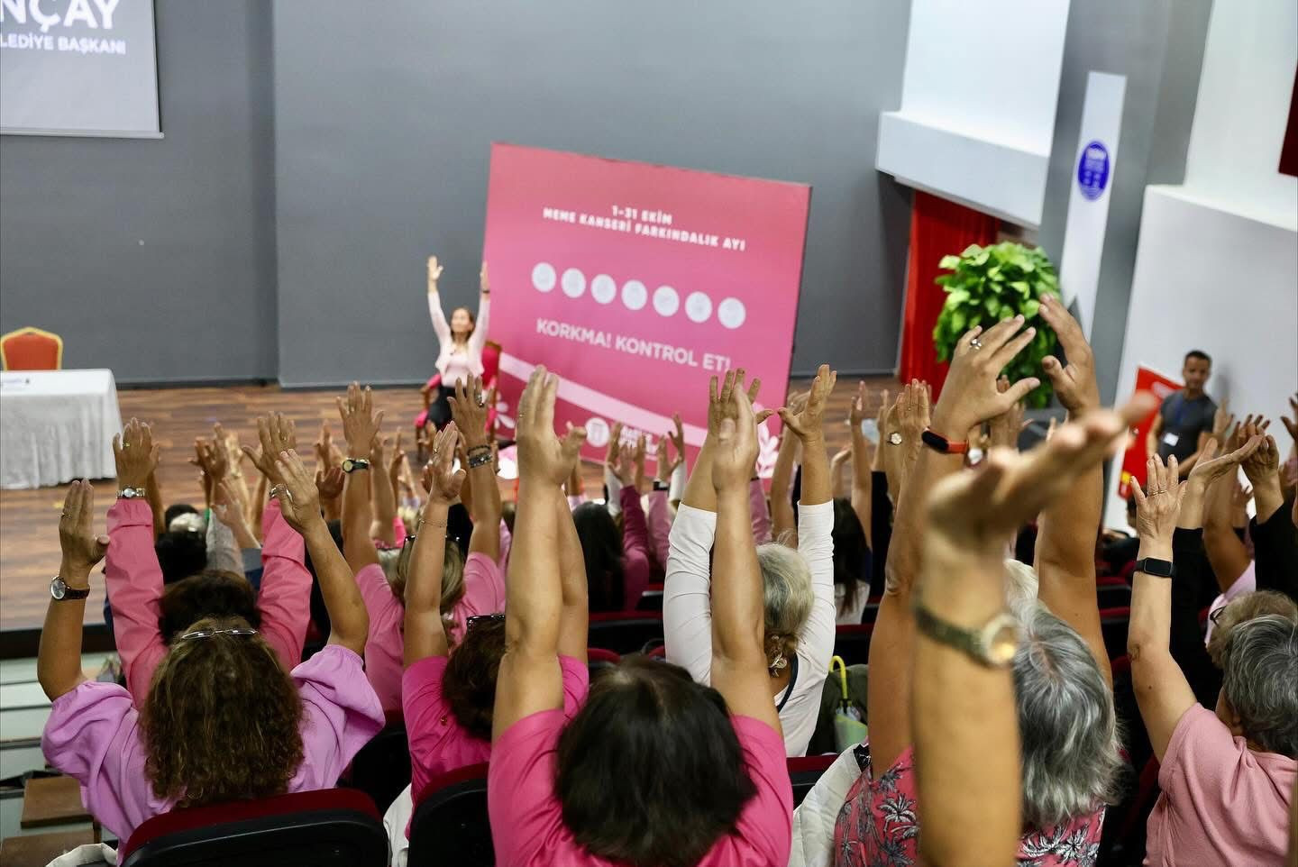 Ayrıca, Didim Belediyesi personelleri ile birlikte Kalben, Ercan Kesal ve Kerim Yağcı gibi sanat dünyasının tanınmış isimlerinin meme kanseri farkındalığına dikkat çeken mesajlarının yer aldığı özel video da etkinlikte izlendi.