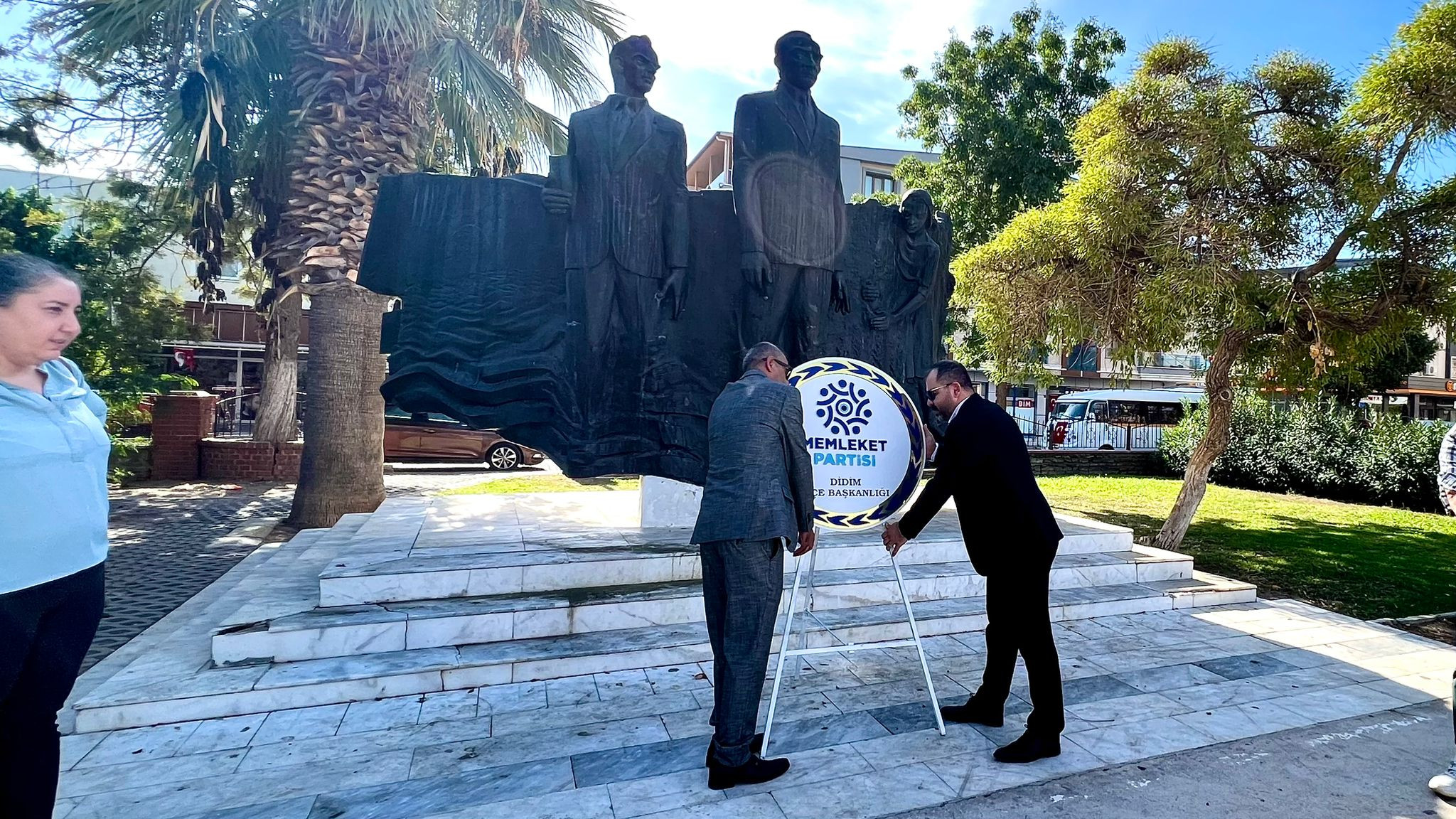 Memleket Partisi Aydın İl Başkanı Caner Ünlü'nün de katıldığı programda Hacı Darıcı ve ekibi, Merkez Park'taki Didim'in ilk büyük Atatürk Anıtı'nda Cumhuriyetimizin 100. Yılını kutladı.