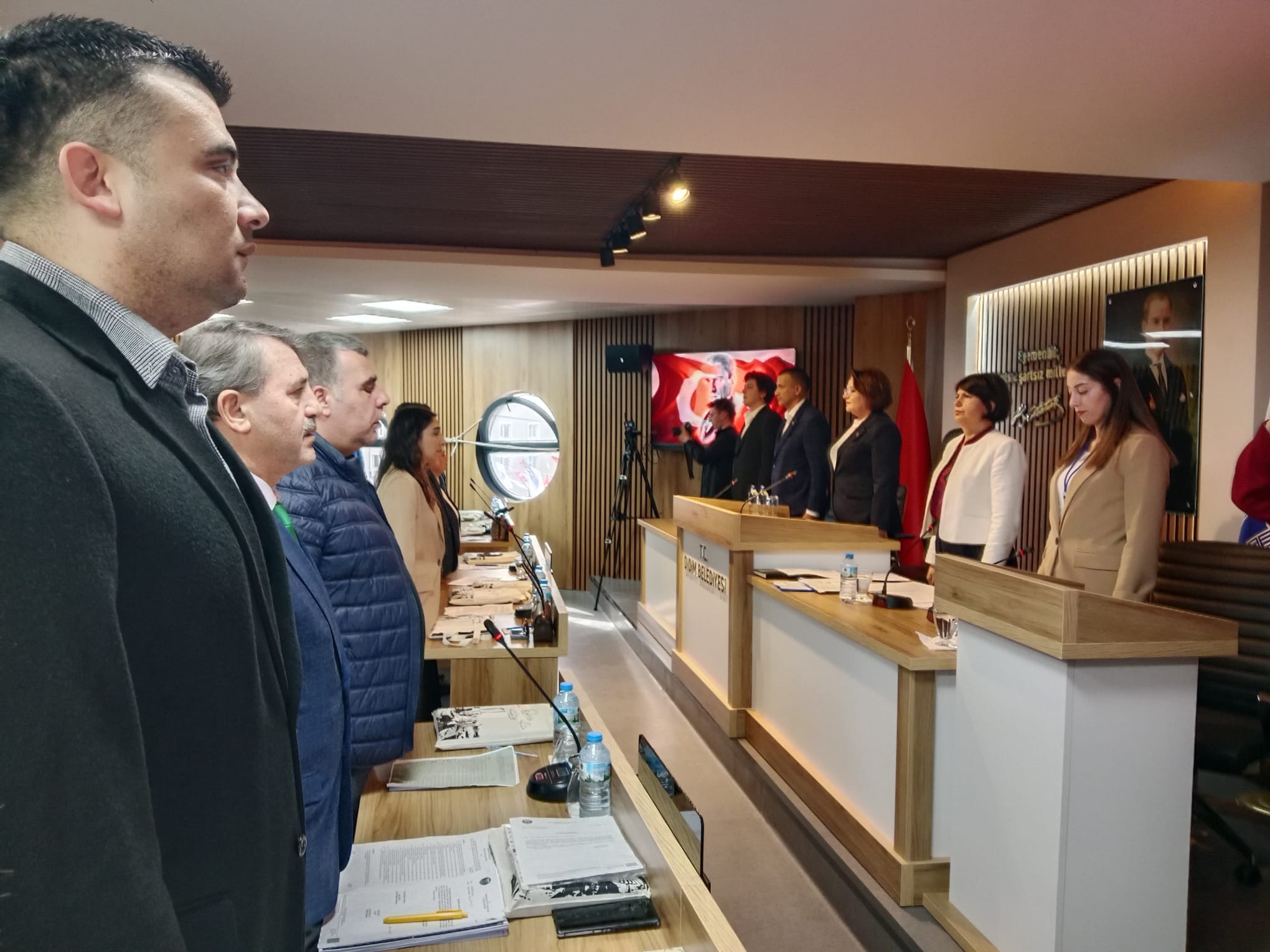 Belediye meclis salonunun kapısından girildiğinde ilk dikkat çeken şey, masaların üzerindeki kumaş çantalar ya da gündem maddelerinin kalınlığı değil, küçük ama anlamı büyük bir detaydı.