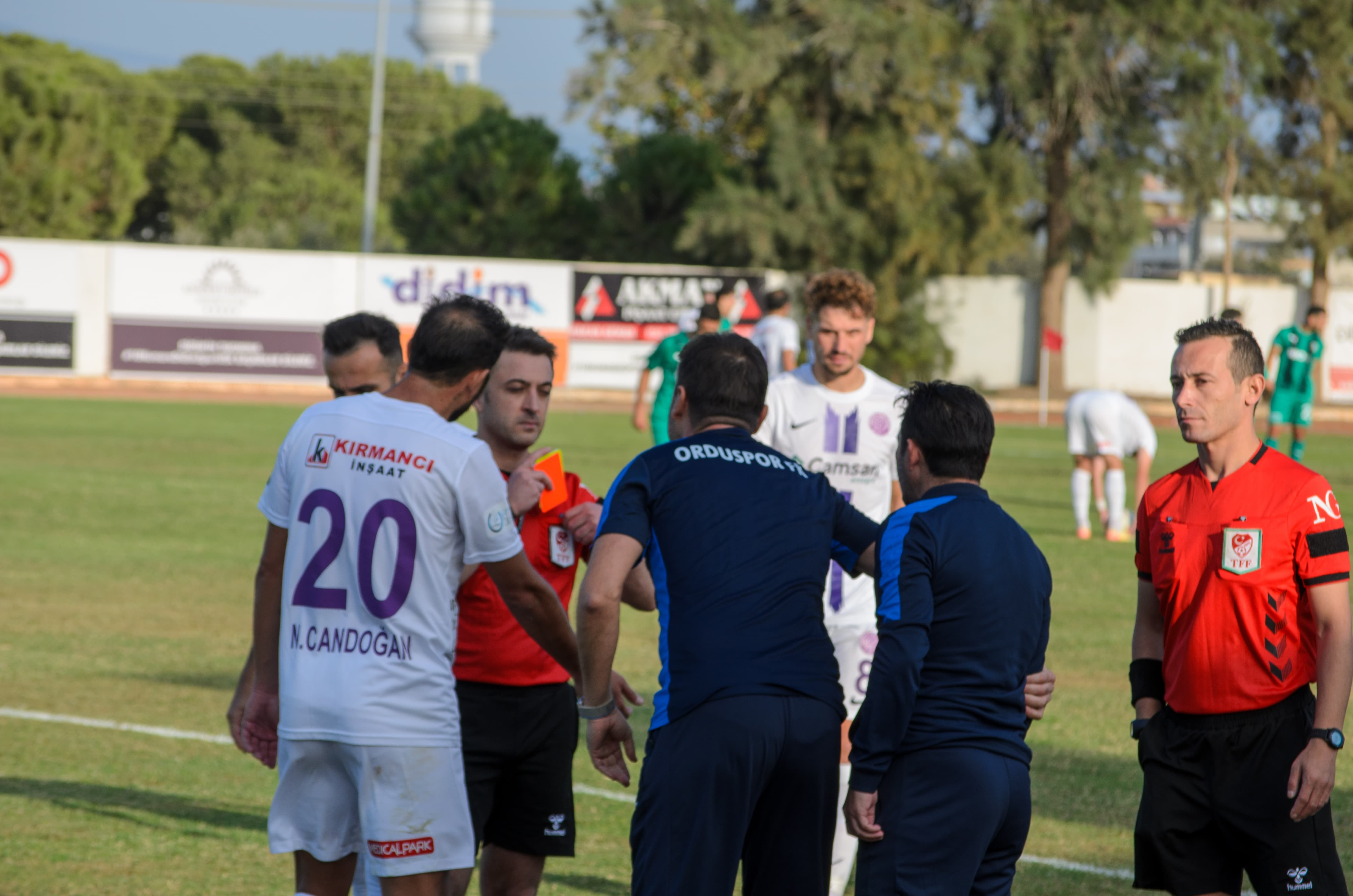 Konuk ekip 52 Orduspor’da 15. dakikada sarı kart gören Hüseyin Furkan, 27. dakikada yaptığı sert faul neticesinde ikinci sarı karttan kırmızı kart gördü ve takımını 10 kişi bıraktı.