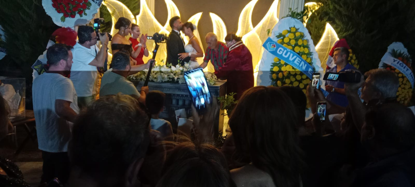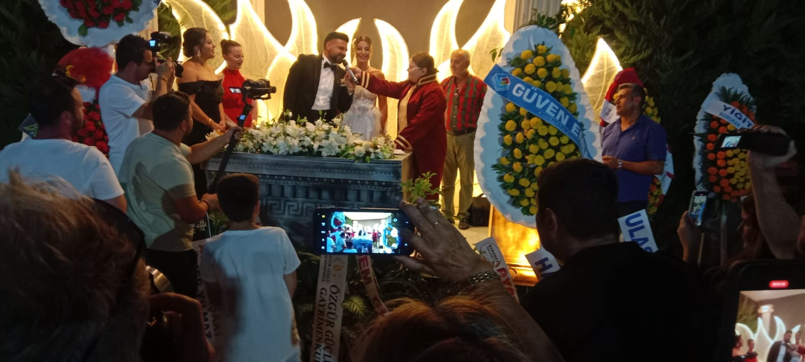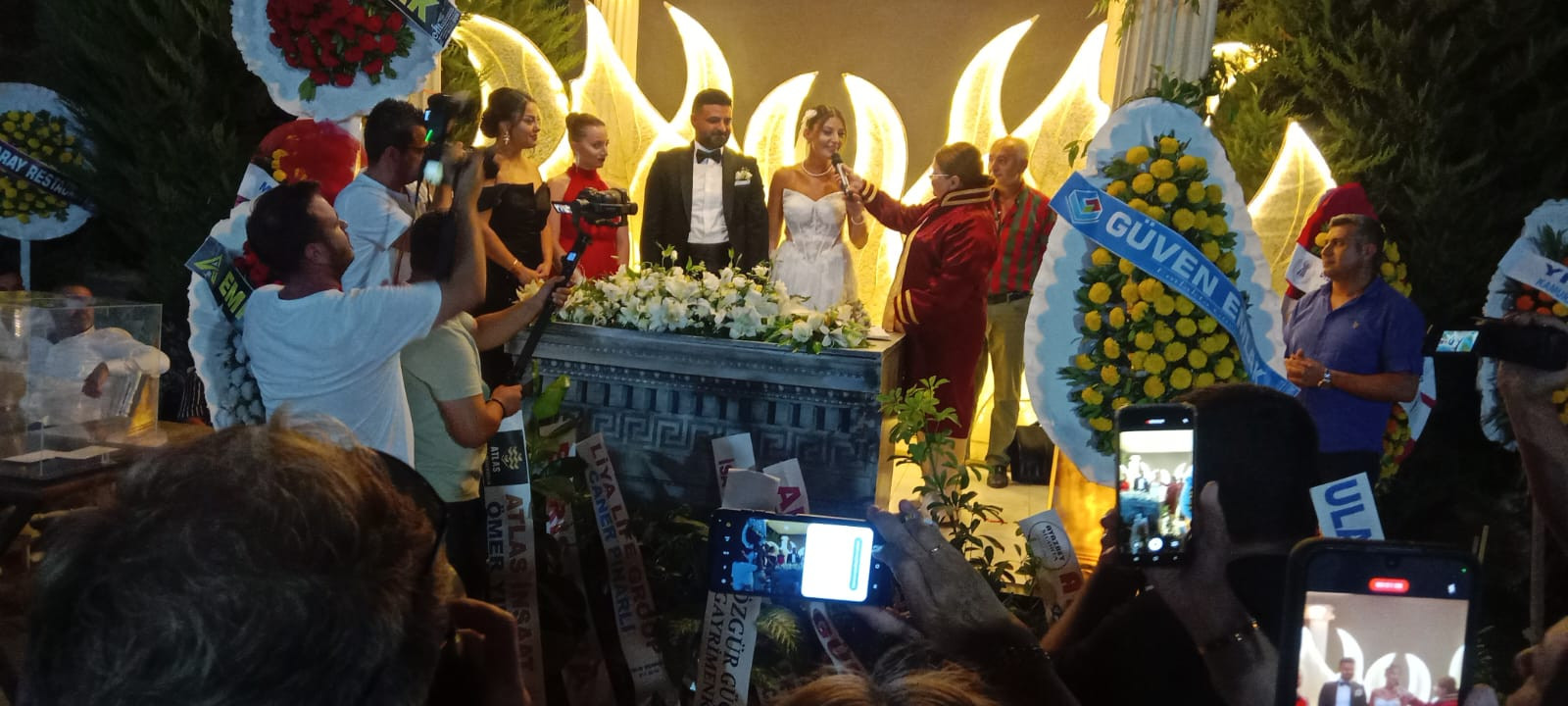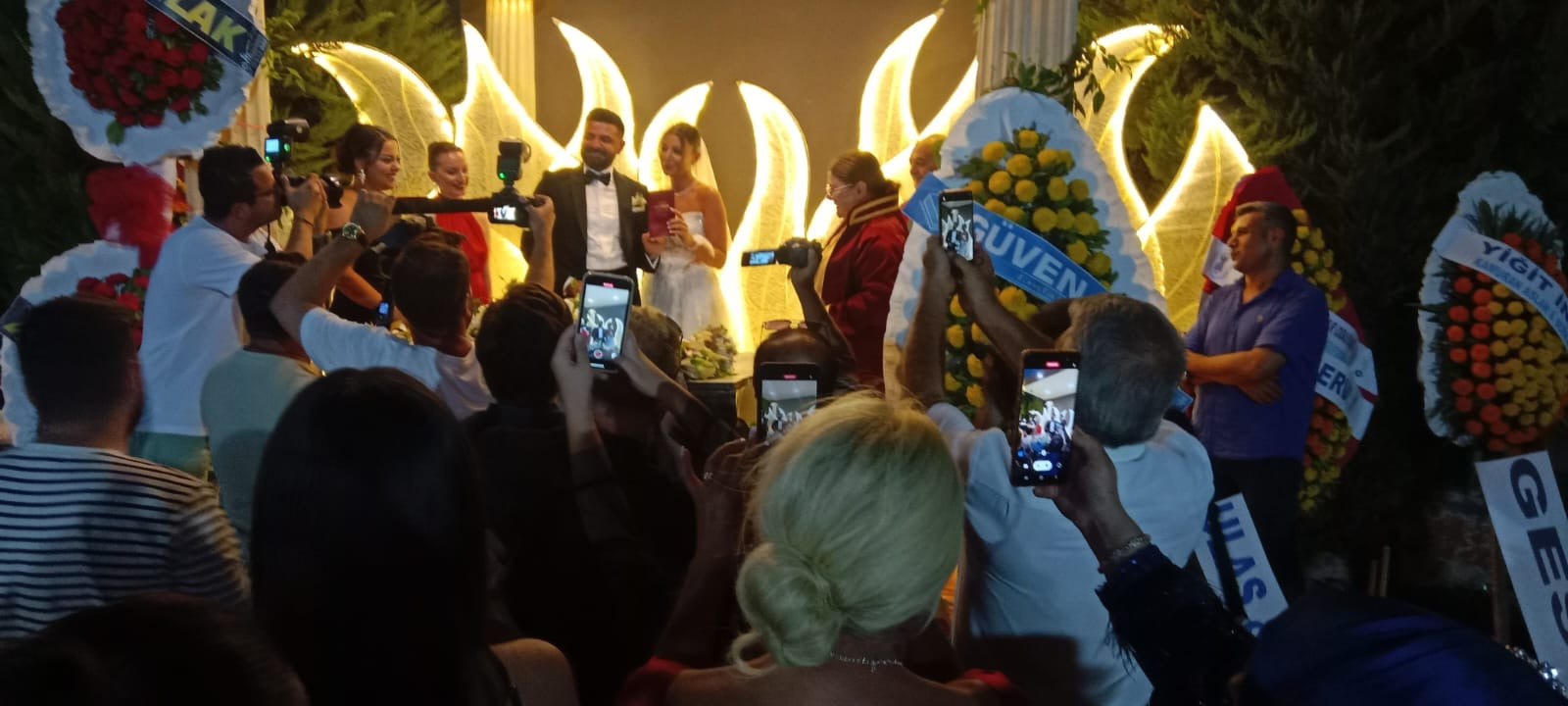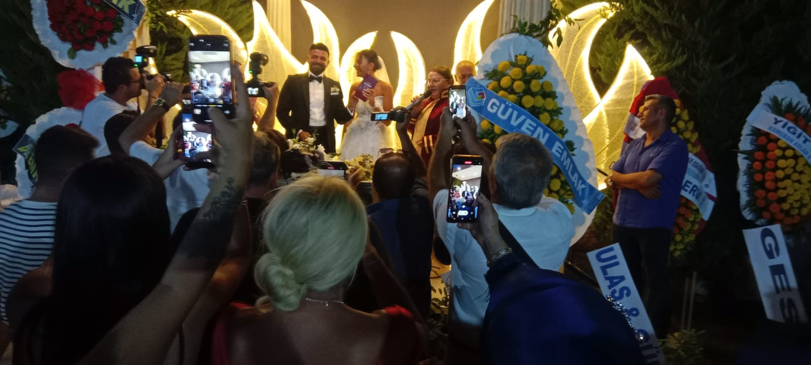 Yaklaşık 2 bin davetlinin katıldığı yemekli düğün gecesinde çiftin nikahını Didim Belediye Başkanı Hatice Gençay kıydı. Gençay, evlilik cüzdanını gelin ve damada teslim ederek, "Ömür boyu mutluluklar" diledi.