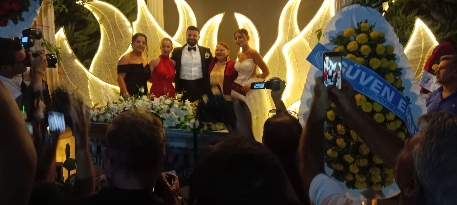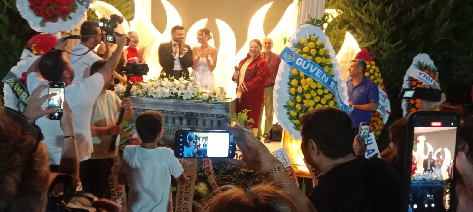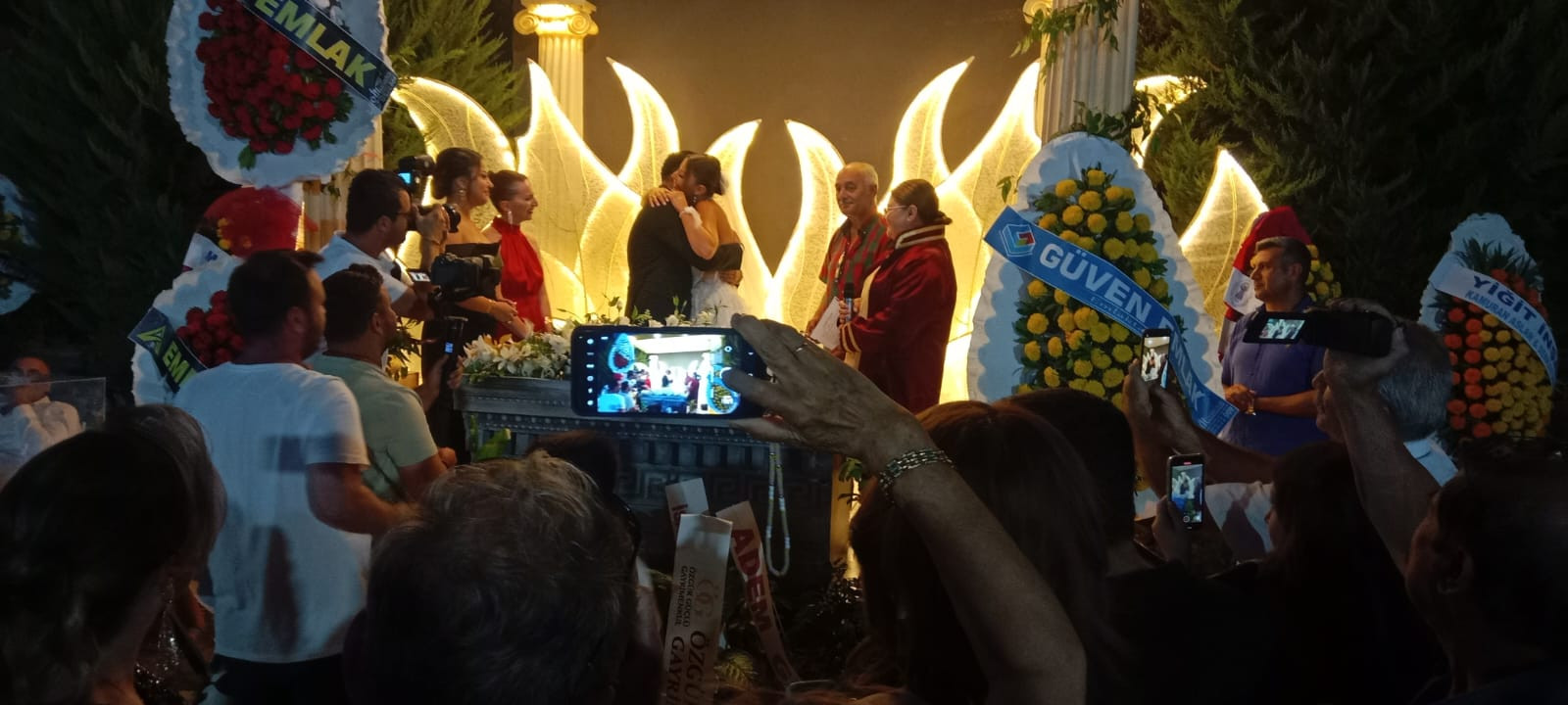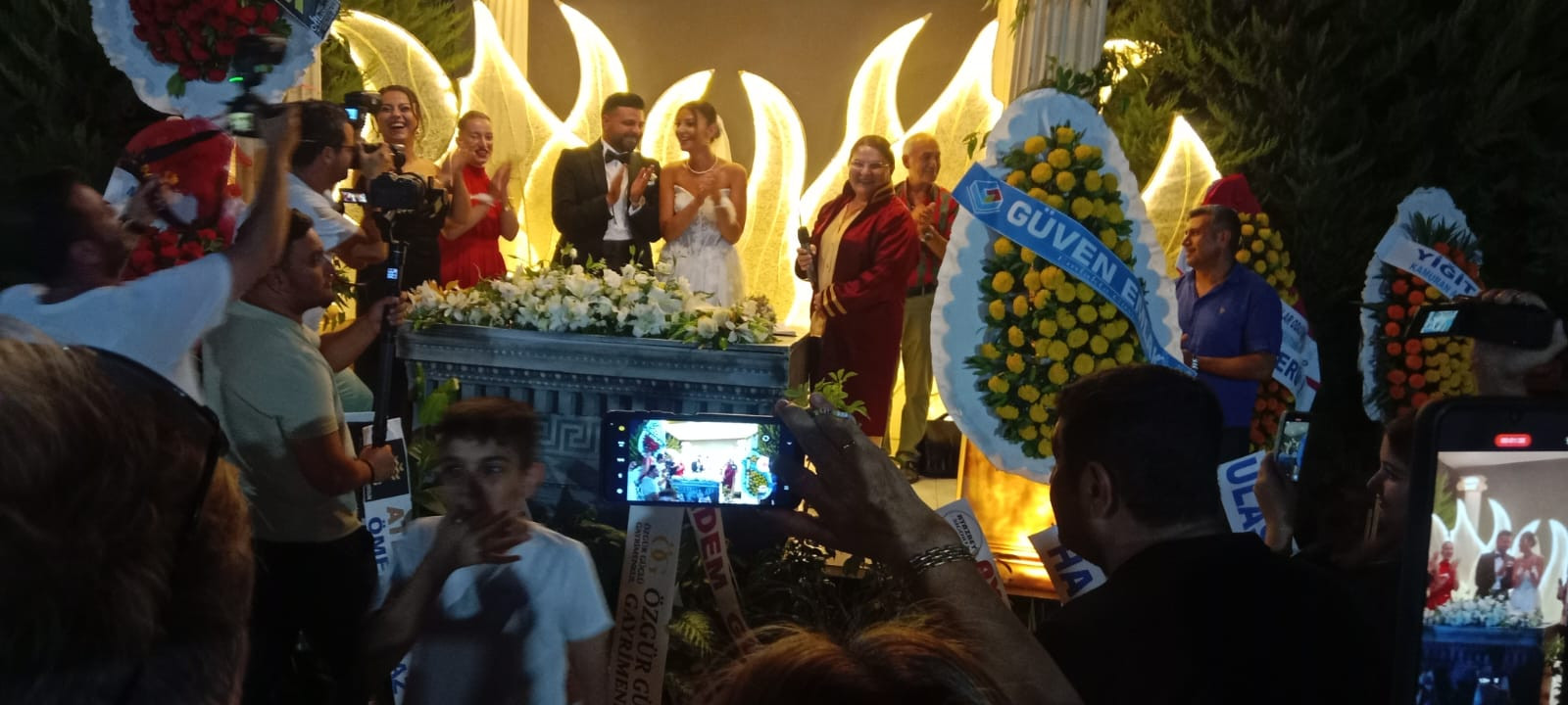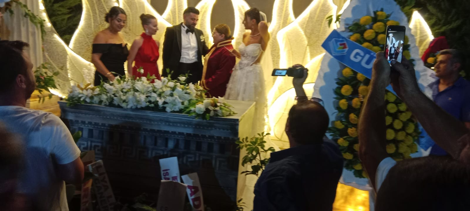 Yaklaşık 2 bin davetlinin katıldığı yemekli düğün gecesinde çiftin nikahını Didim Belediye Başkanı Hatice Gençay kıydı. Gençay, evlilik cüzdanını gelin ve damada teslim ederek, "Ömür boyu mutluluklar" diledi.