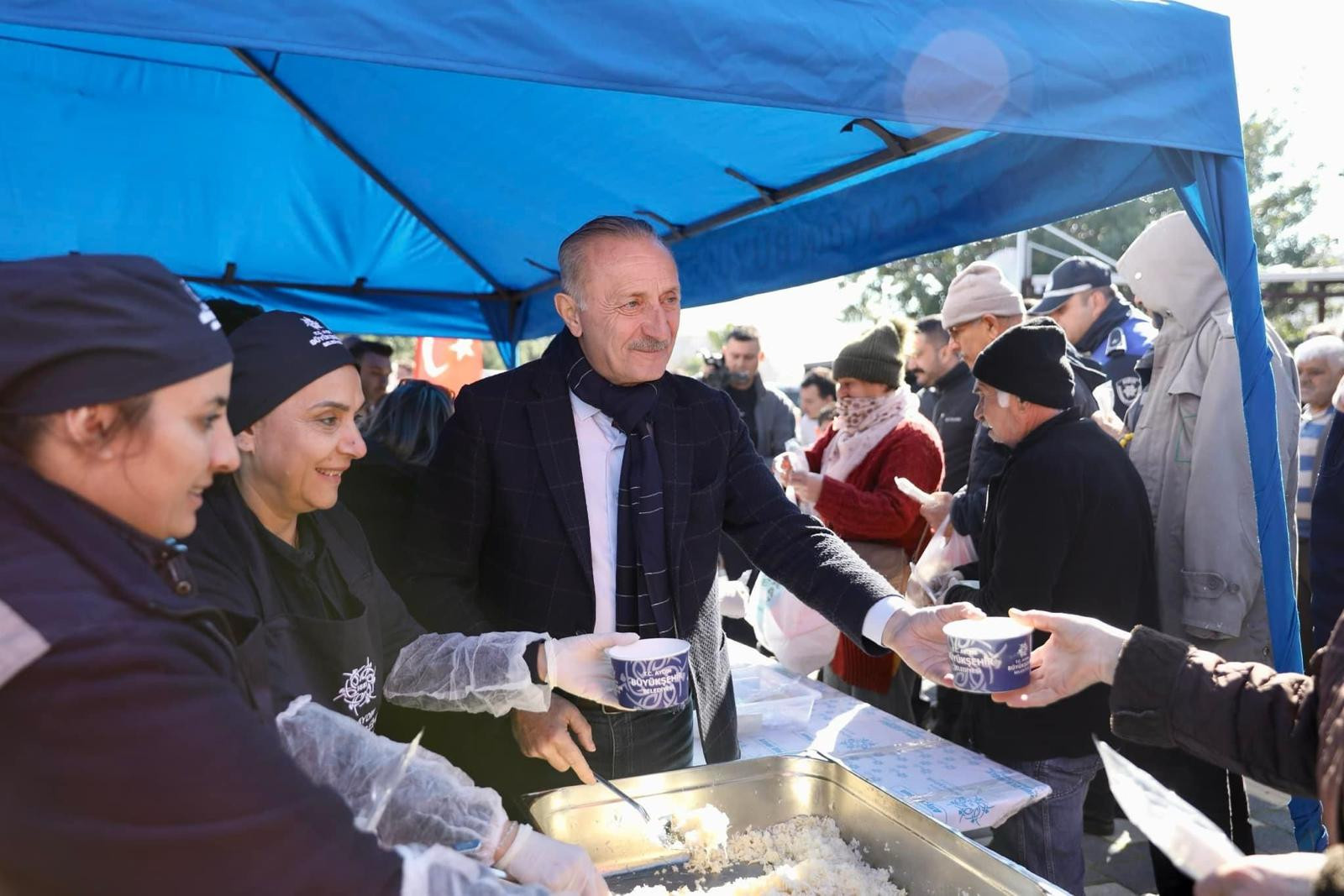 Başkan Çerçioğlu ve Başkan Atabay, pazaryerinde esnafa ve vatandaşlara pilav hayrında bulundu.