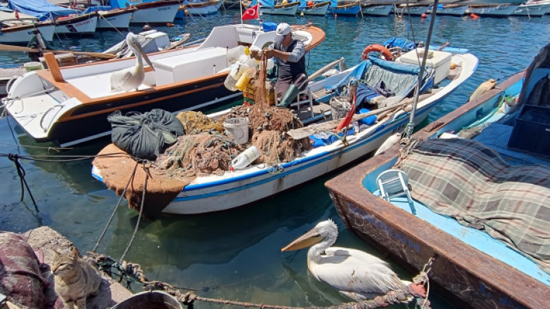 Liman içinde olduğu gibi, bağlı tekneler arasında dolaşan, zaman zaman teknelere çıkan, tekne üzerlerinde avdan dönen balıkçıların ağlarını temizledikleri anlarda yanlarından hiç ayrılmayan, hatta Foça’nın ünlü kedileriyle balık kapma yarışına giren pelikanlar kentin en çok fotoğrafı çekilen tanıtıcı unsurlarından biri oldu.