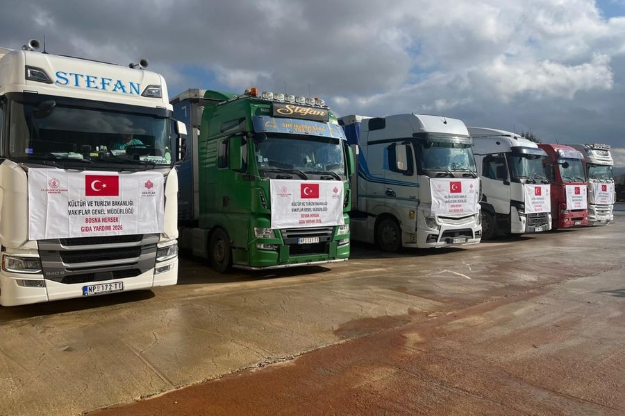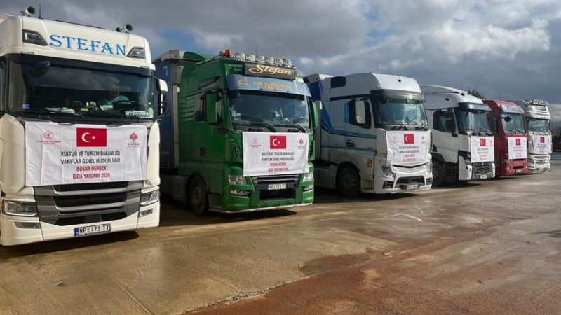 Haber: Yusuf Mehmet Sarışın - Kültür Ve Turizm Bakanlığı Vakıflar Genel Müdürlüğü tarafından Bosna-Hersek ve Karadağ'daki ihtiyaç sahiplerine 3 TIR dolusu gıda kolisi gönderildi.