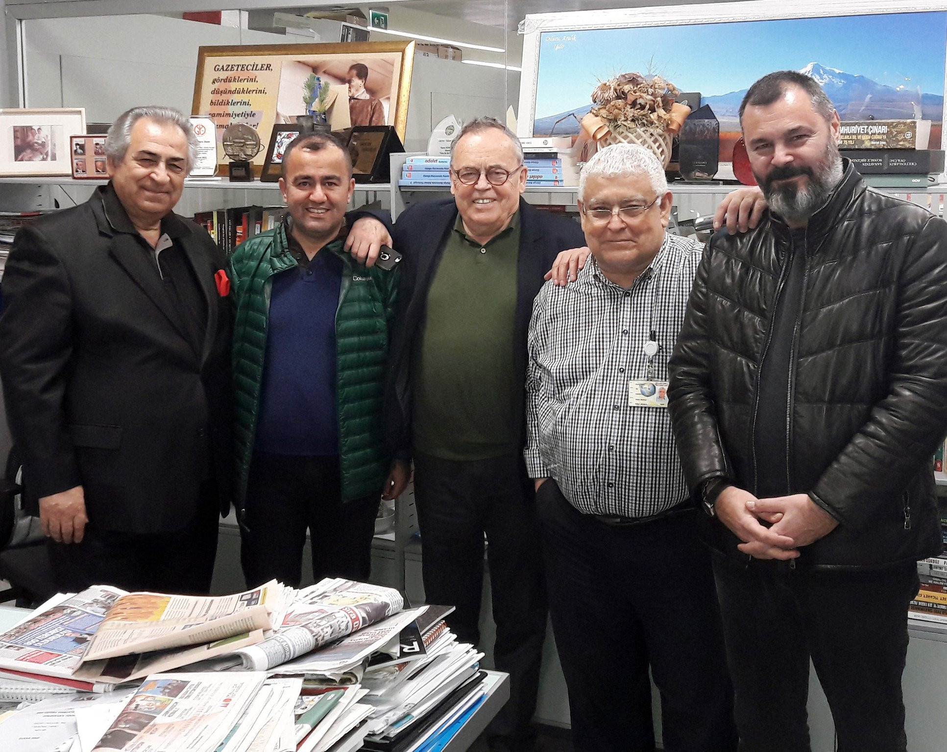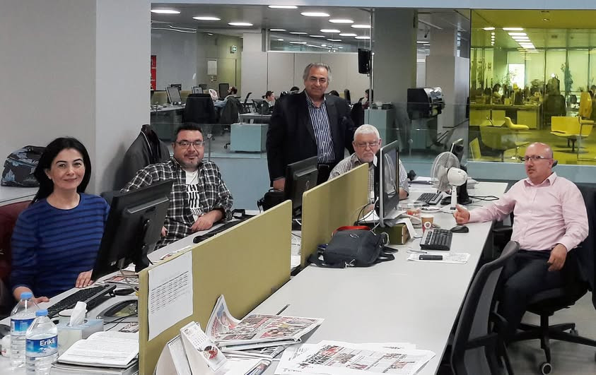 HABER MERKEZİ MÜDÜRÜMÜZ REHA ÖZ'LE SOHBET EDERKEN DOĞAN HIZLAN ABİMİZ YAZI İŞLERİ KATINA İNİP BİZE UĞRAYINCA OLCAY ÖZTORUN'UN Olcay Öztorun KATILIMIYLA MUSTAFA BAKACAK BU FOTOĞRAFMIZI ÇEKTİ.