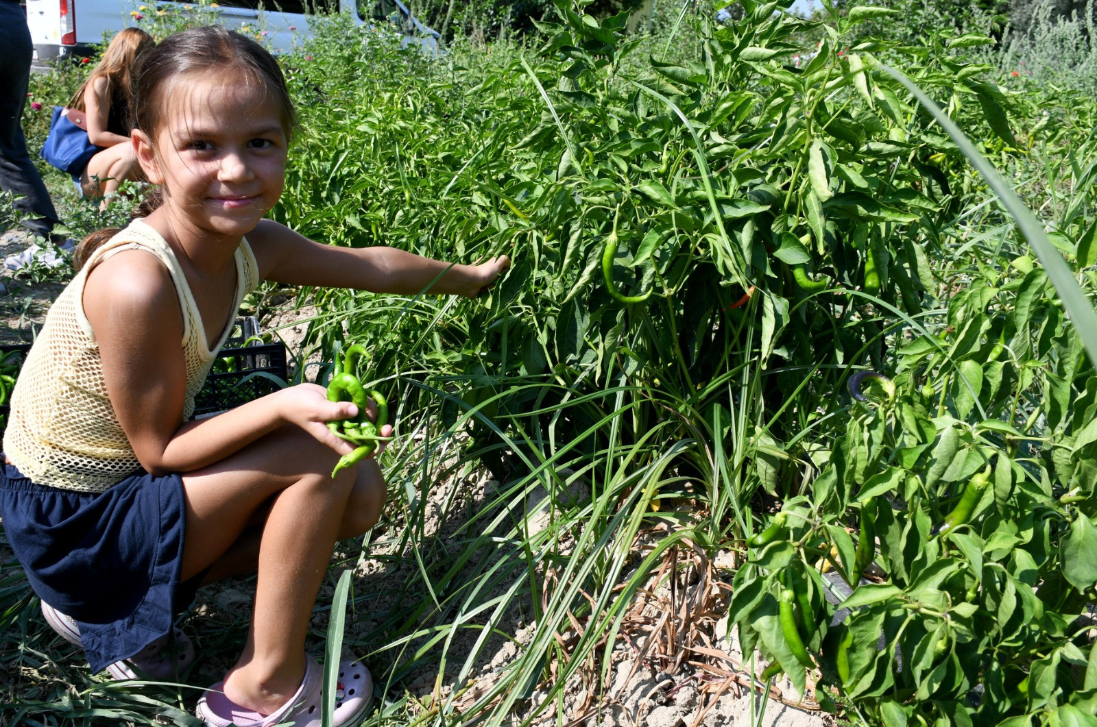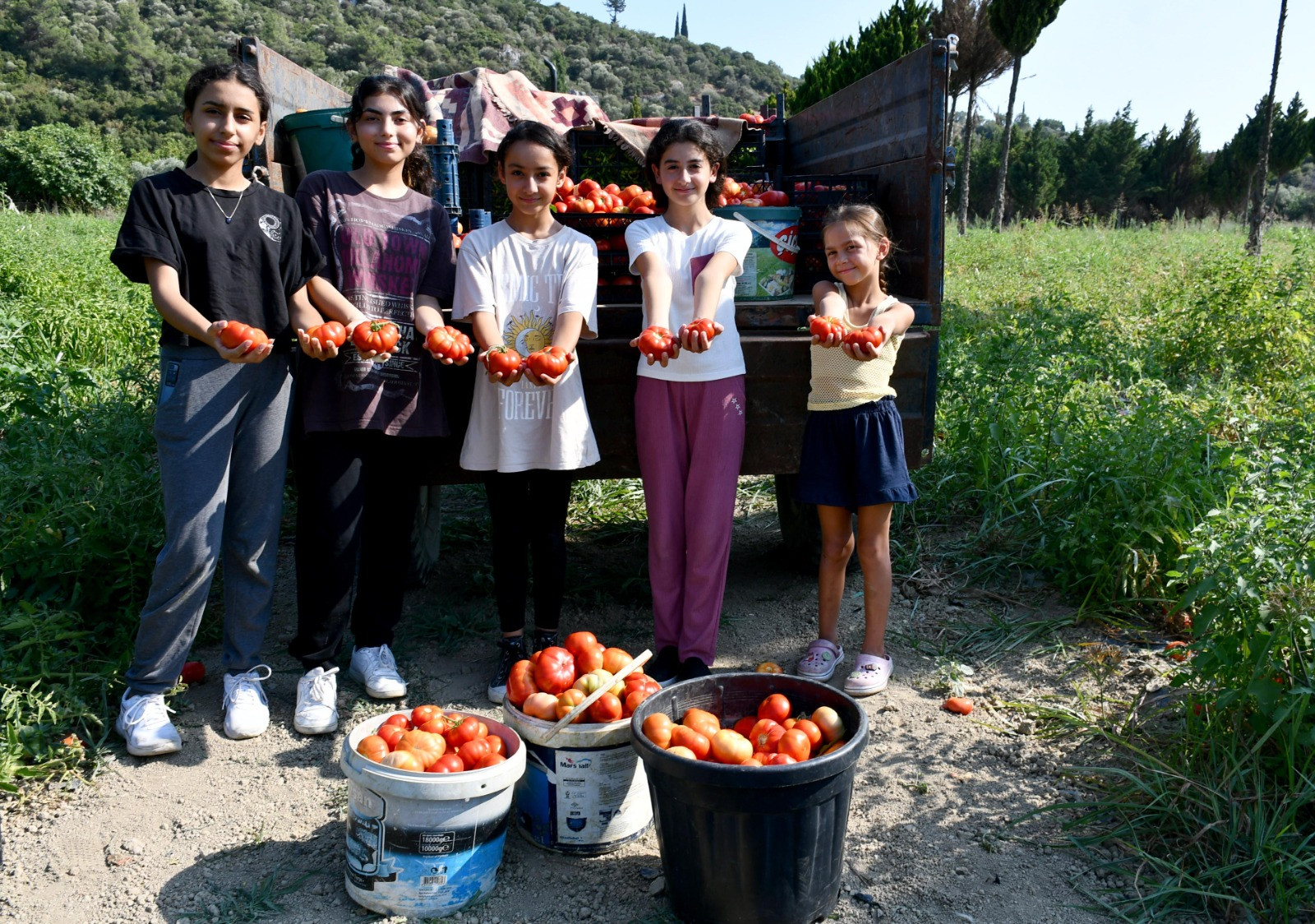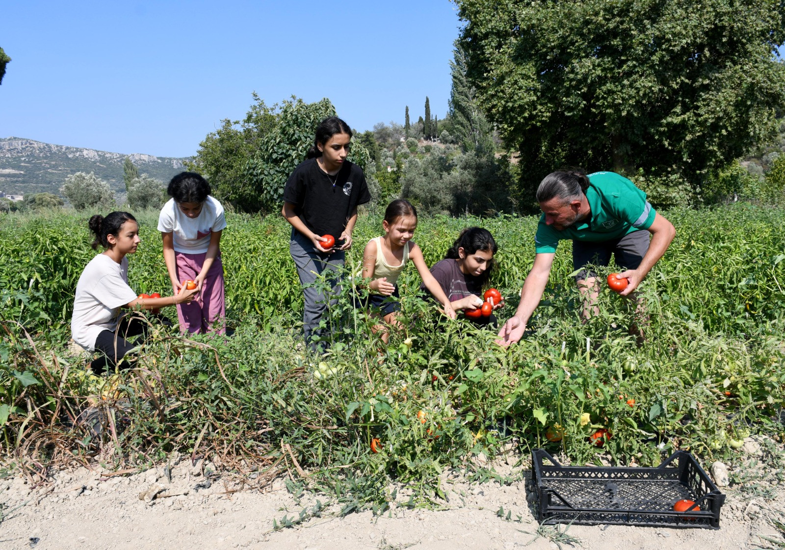 Aradan geçen zaman içerisinde ürünleri olgunlaşan çocuklar, Adabahçe’ye giderek hasat yaptı. Minik eller, kendileri için ayrılan yaklaşık 300 metrekarelik alanda yetişen salatalık, domates, biber, patlıcan, kabak, acur, kavun ve karpuz gibi sebze ve meyveleri toplayarak kasalara yerleştirdi.