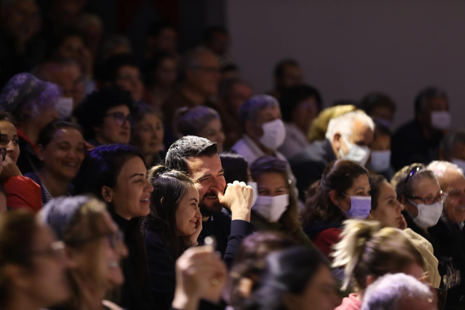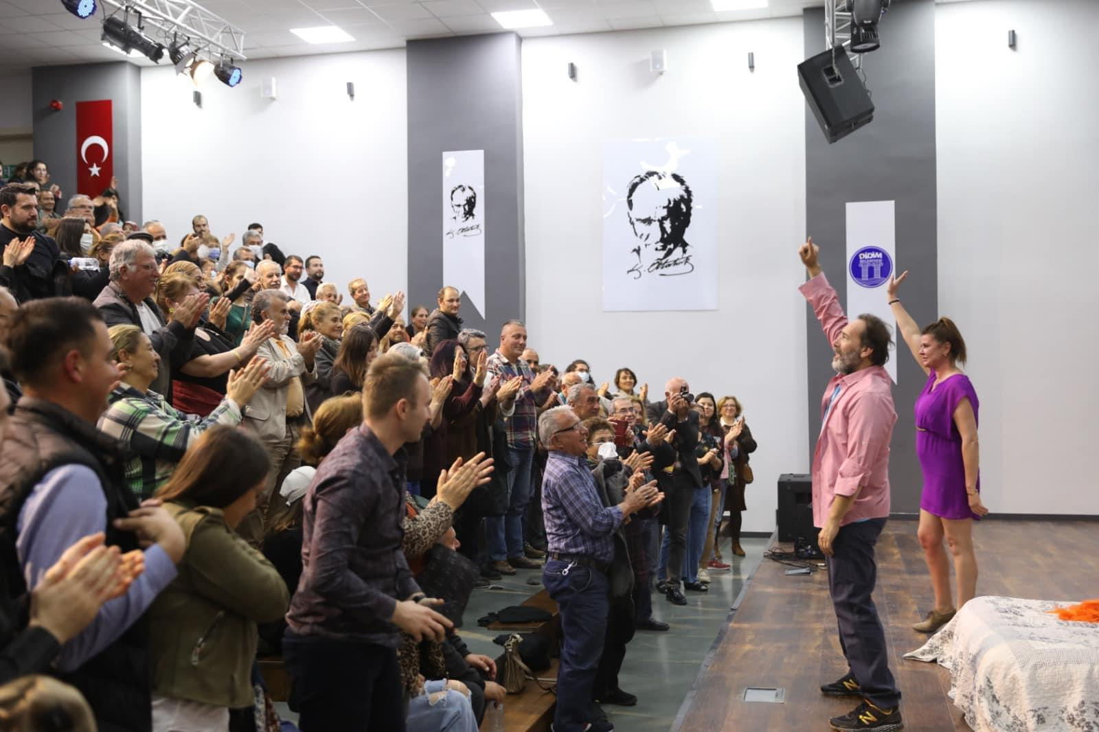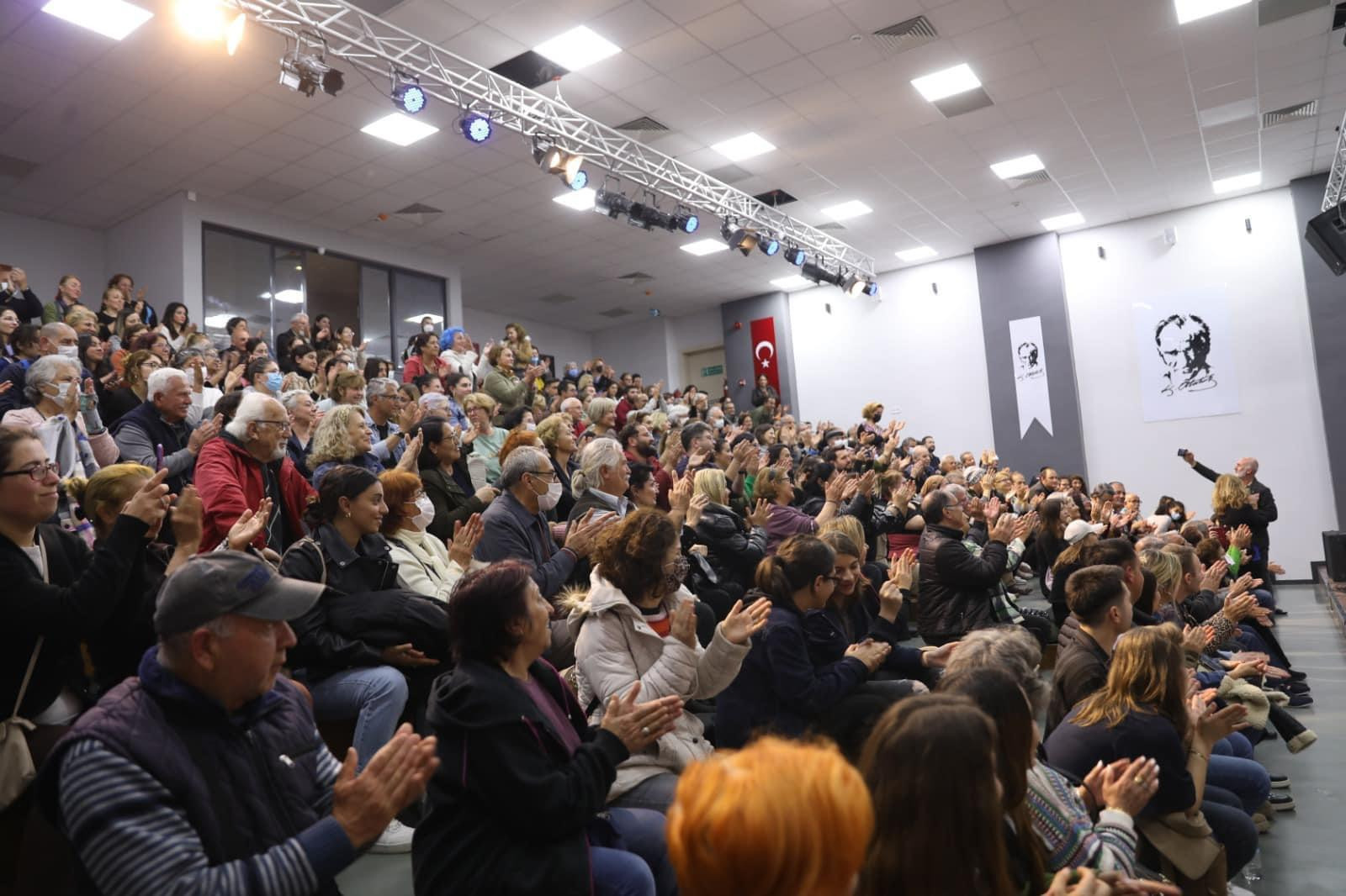 Tiyatro salonunu dolduran vatandaşlar Dünya Tiyatro gününde gerçekleşen tiyatro etkinliği için Didim Belediye Başkanı A.Deniz Atabay ve emeği geçenlere teşekkür etti.