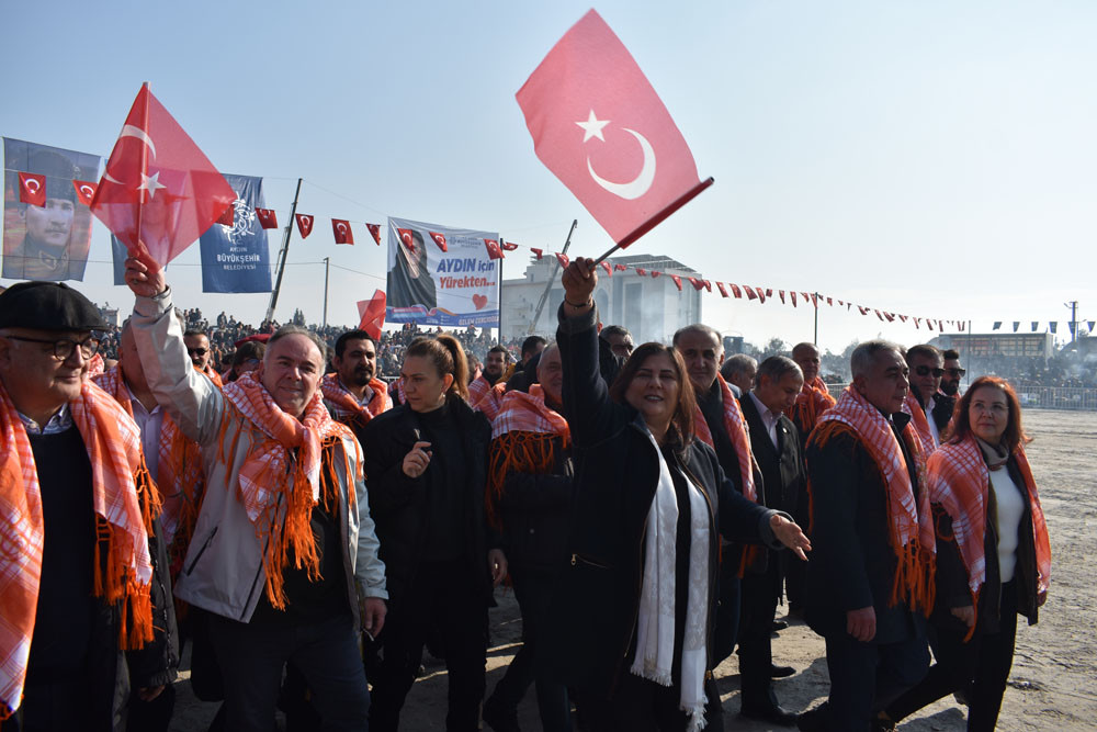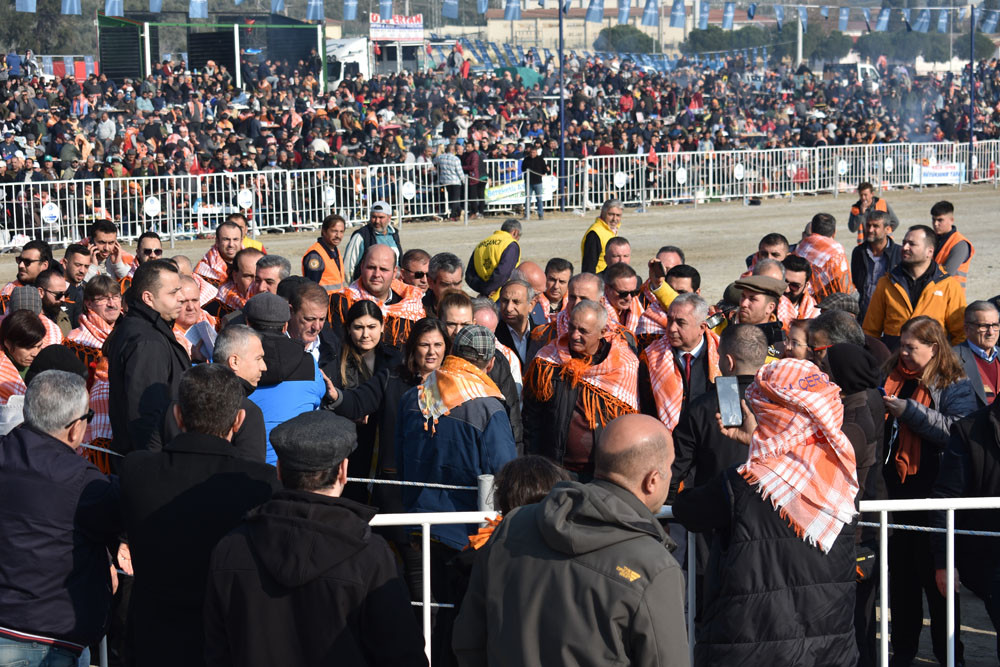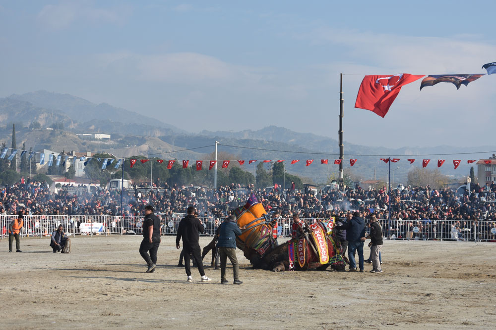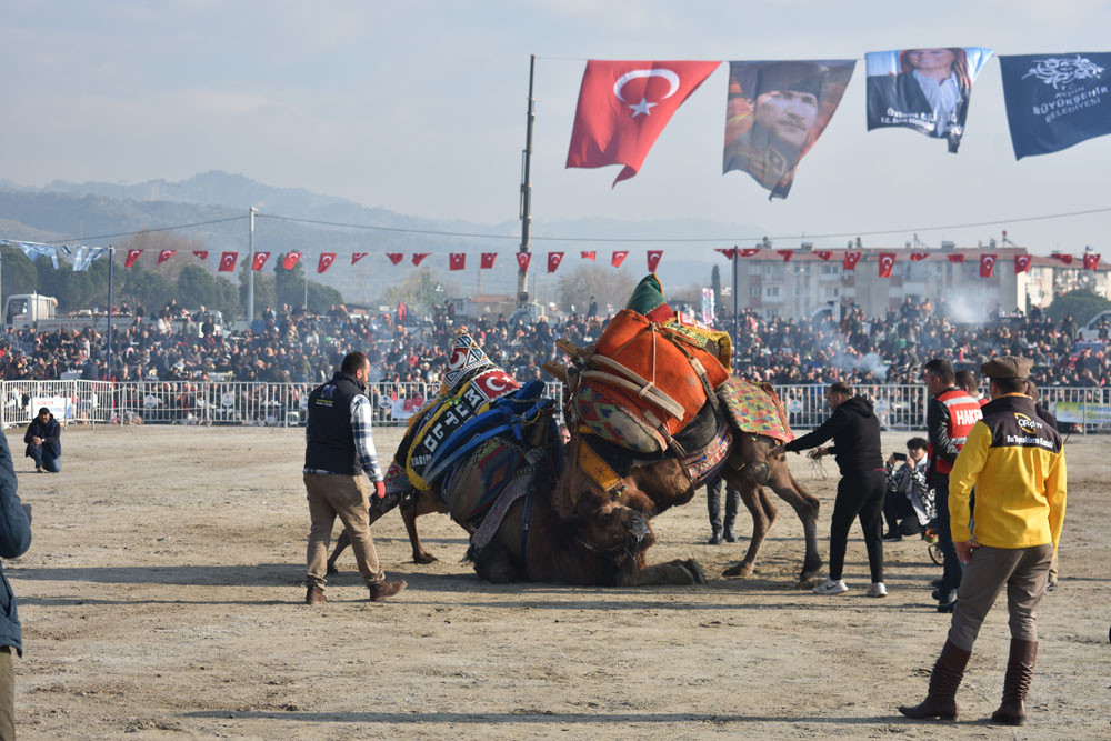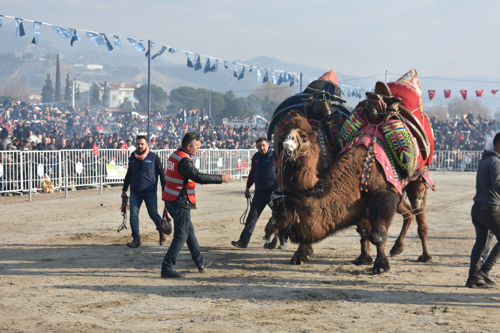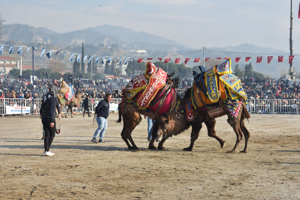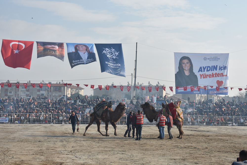Aydın’da ve Türkiye’nin çeşitli illerinde yetiştirilen develer ile birlikte İran’dan getirilen develer bazen çırpma, bazende sağ ve sol teklerini gösterdi. Çatal kapanı yapan develer büyük alkış aldı. Deve güreşi alanında dolaşarak vatandaşları selamlayan Aydın Büyükşehir Belediye Başkanı Özlem Çerçioğlu, güreş severlere kırmızı karanfil verdi, Türk Bayrağı salladı ve başındaki kasketi attı. Başkan Çerçioğlu, güreşlerin panayır havasında geçtiğini belirterek “Bütün Aydın halkı burada. Hava da çok güzel. Allah nasip etti ve bugün müthiş bir hava var. Aydınlılar, ailesiyle, çoluğu çocuğuyla burada. Güreşler de çok heyecanlı. Bu yıl da müthiş çatımlar var. Güreş komitesine de ayrıca çok teşekkür ediyorum. En öncelikli amacımız ise yörük kültürümüzü gelecek nesillere çocuklarımıza yaşatmak ve taşıtmak, bu kültürü de onlara görsel olarak anlatmak” dedi.