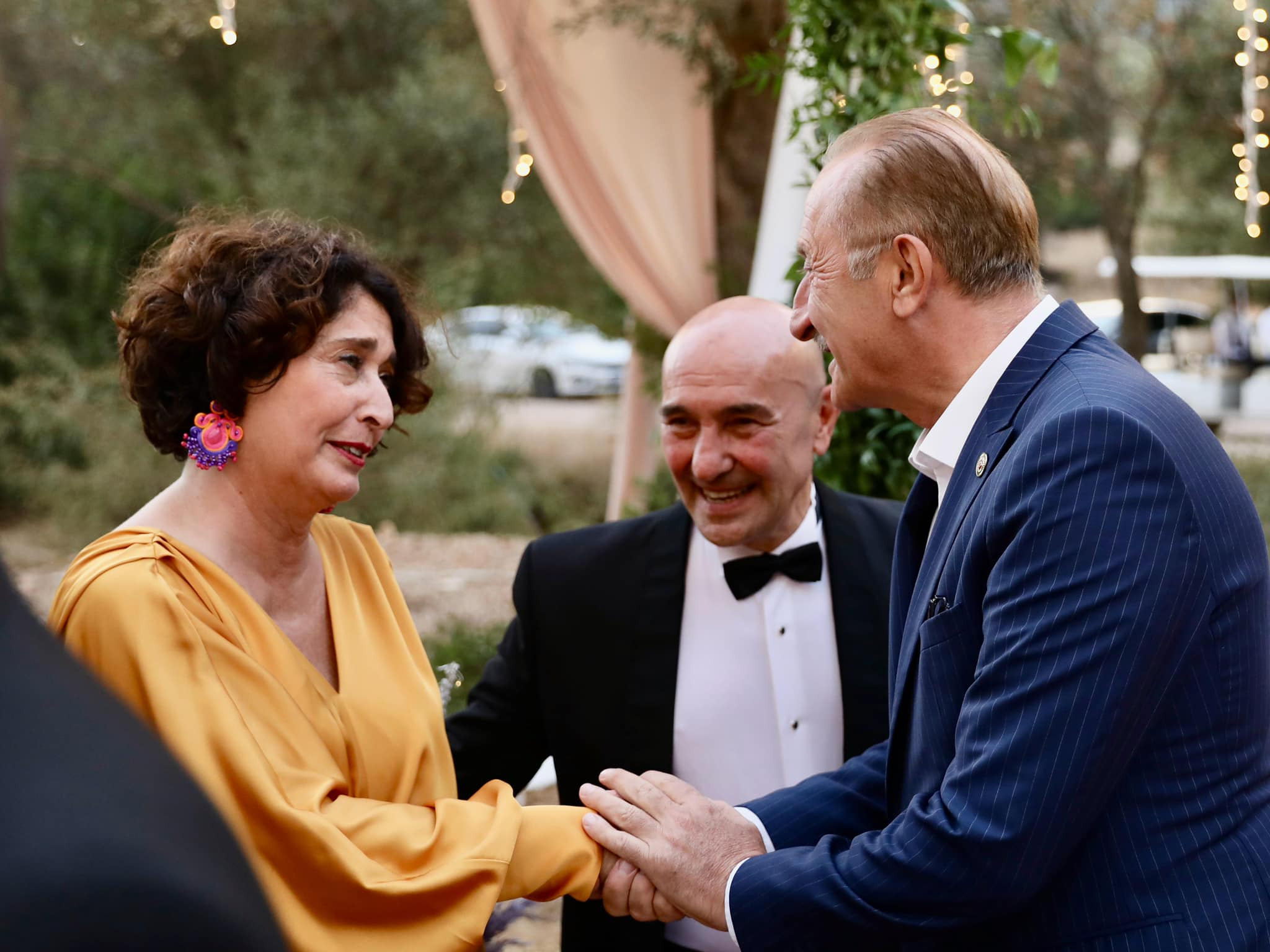 Güzelbahçe Olivelo Yaşayan Park’taki nikah töreninde çiftin şahitliklerini CHP Genel Başkanı Kılıçdaroğlu, eşi Selvi Kılıçdaroğlu ile Defne Soyer ve Yağız İzgi yaptı.