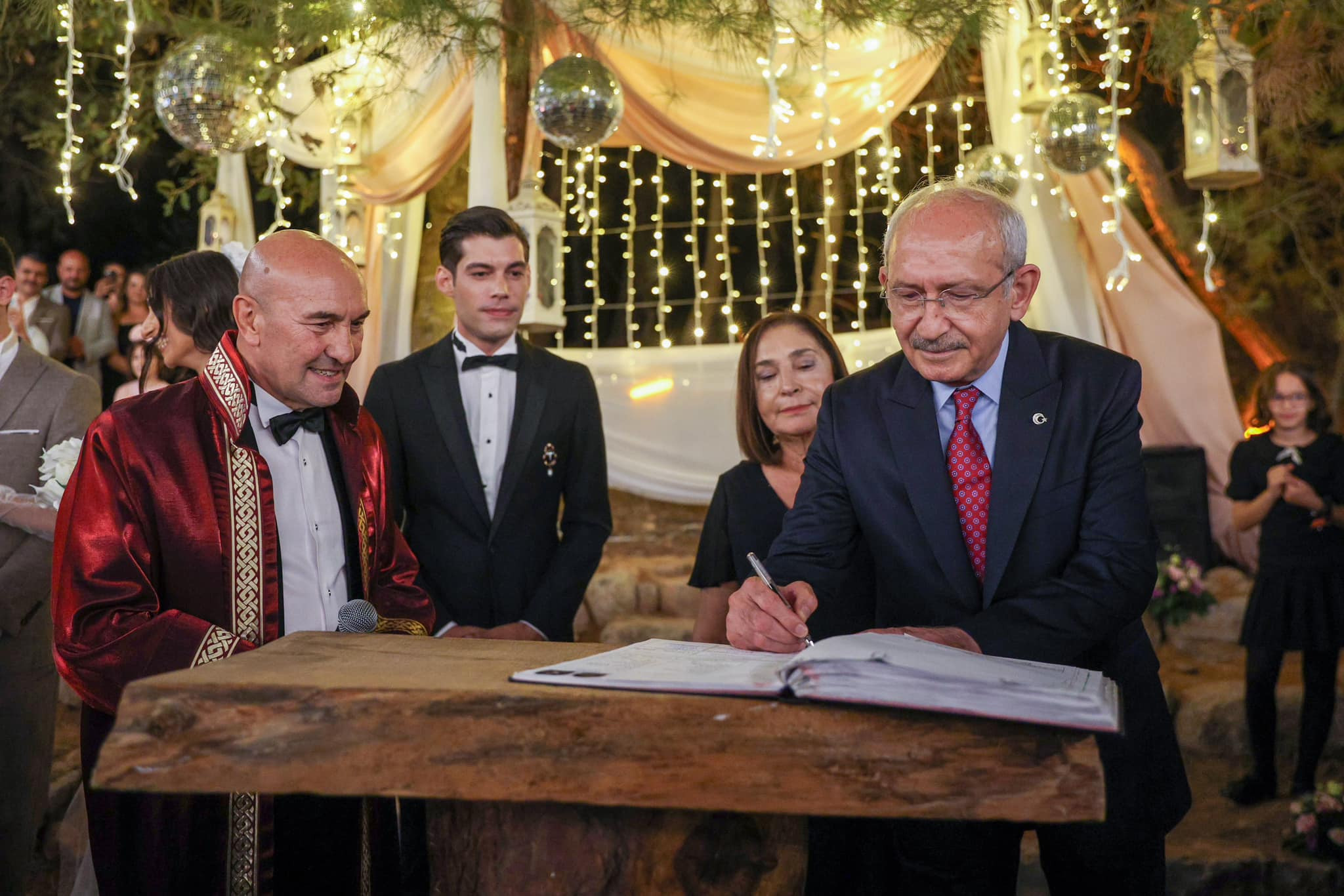 Cumhuriyet Halk Partisi (CHP) Genel Başkanı Kemal Kılıçdaroğlu, İzmir Büyükşehir Belediye Başkanı Tunç Soyer'in kızının nikah törenine katılarak şahitliğini yaptı.