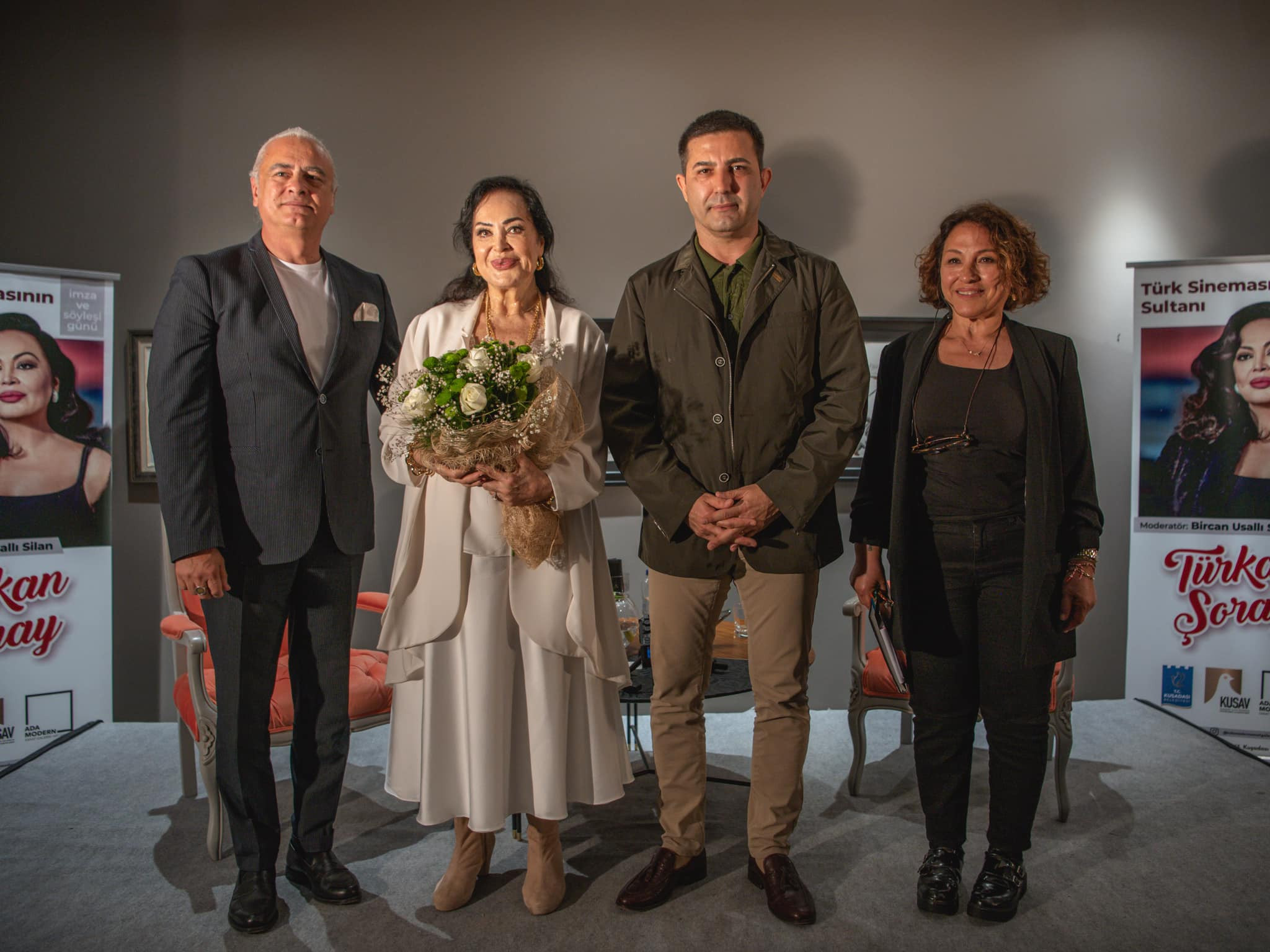 Yeşilçam'ın 'Sultan'ı Türkan Şoray, Kuşadası Belediyesi ile Kuşadası Altın Güvercin Kültür Sanat ve Tanıtım Vakfı (KUSAV) organizasyonuyla Ada Modern Sanat Galerisi’nde gerçekleştirilen söyleşide Kuşadası'nda yaşayanlarla buluştu.
