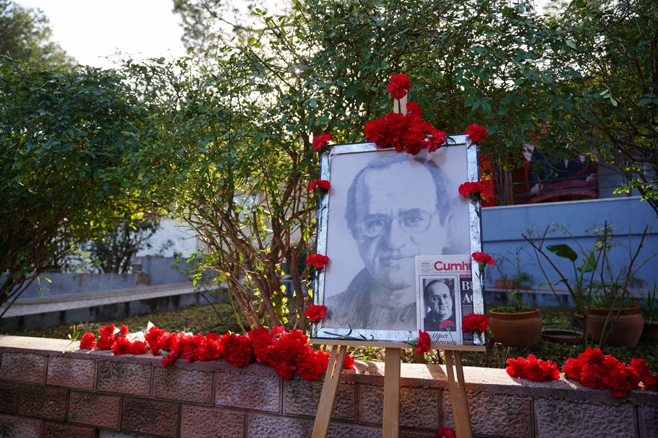 Gazeteci ve yazar Uğur Mumcu, ölümünün 32’nci yılında çok sevdiği Ayvalık’taki evinin önünde karanfillerle anıldı.