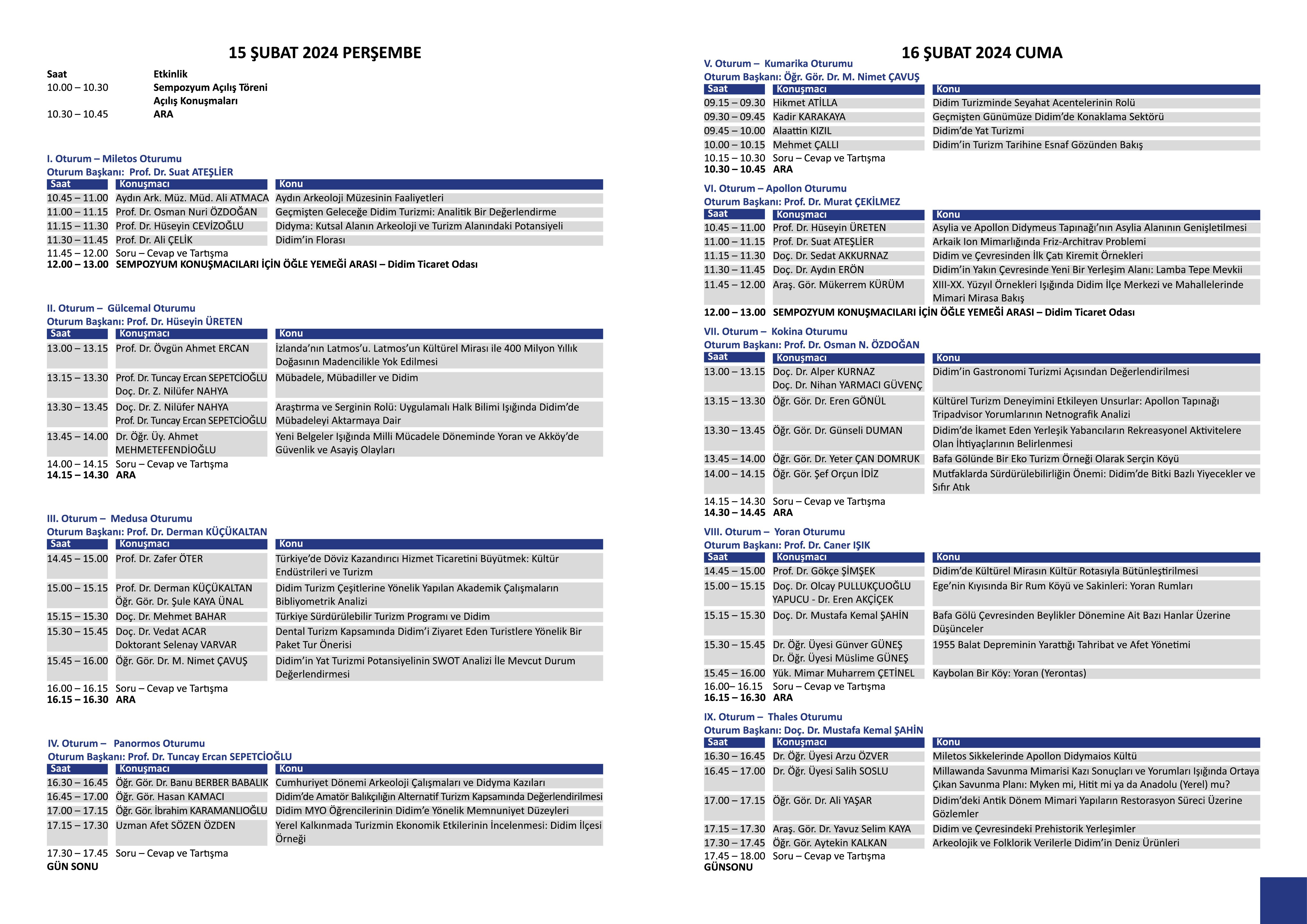 Aydın Adnan Menderes Üniversitesi Didim Ticaret Odası iş birliği ile 15 – 16 Şubat tarihlerinde Aytaç Nurullah Kocabıyık Kültür Merkezinde Didim Kültür ve Turizm Sempozyumu yapılacak.