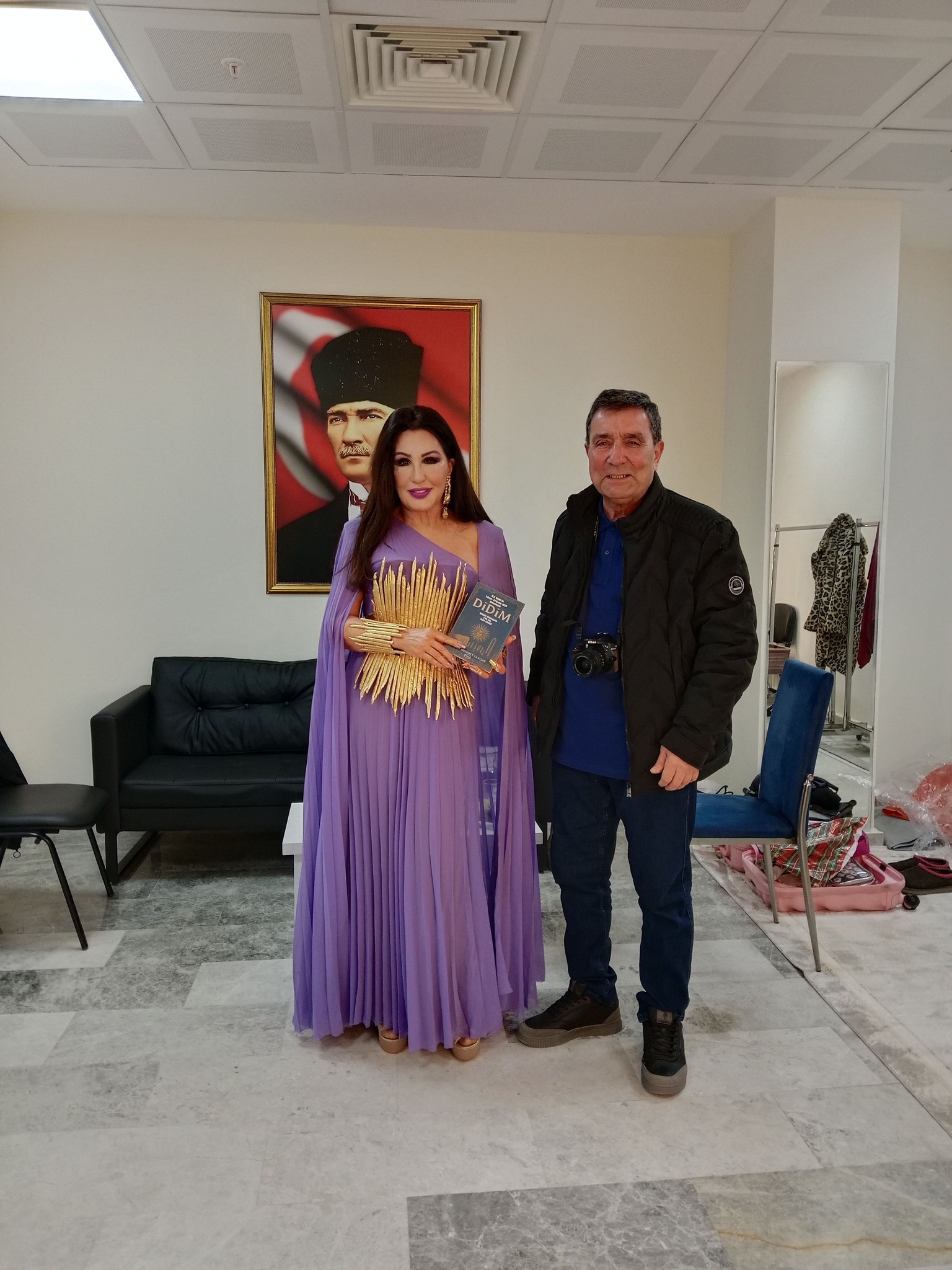 Konser başlamadan kısa süre önce kulise giderek kendisini ziyaret ettim. Sahne hazırlığı arasında kısa ama sıcak bir sohbet gerçekleştirdik. Kendisine “Didim” isimli kitabımı imzalayarak hediye ettim.