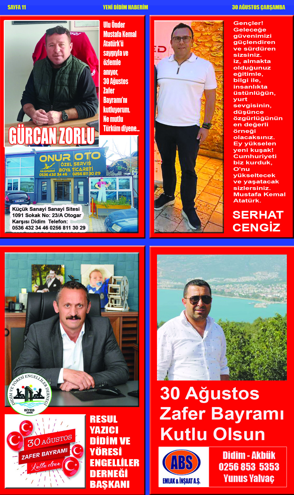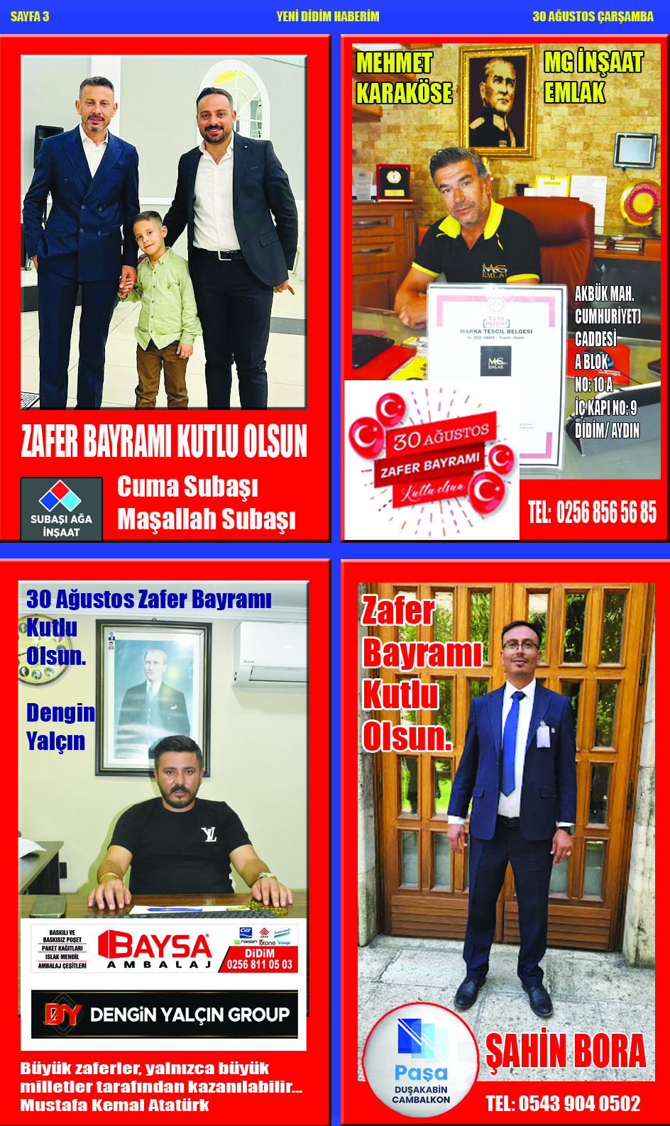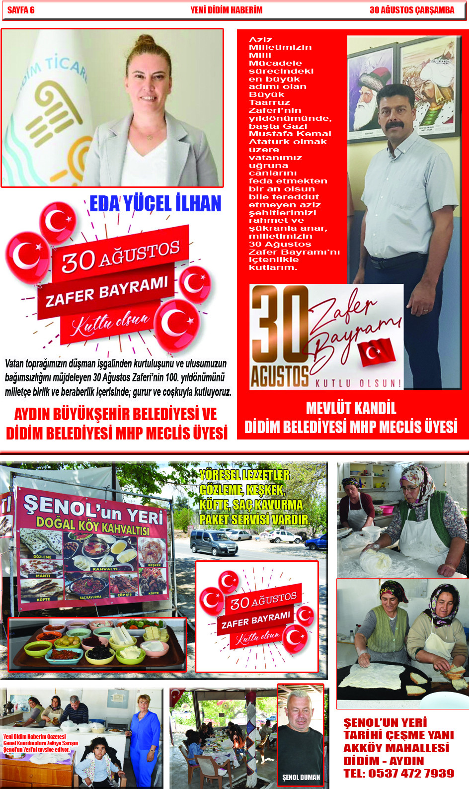 Yeni Didim Haberim Gazetesi 30 Ağustos Sayısı Çıktı. Reklam veren kişi ve kuruluşlara teşekkür ederiz.