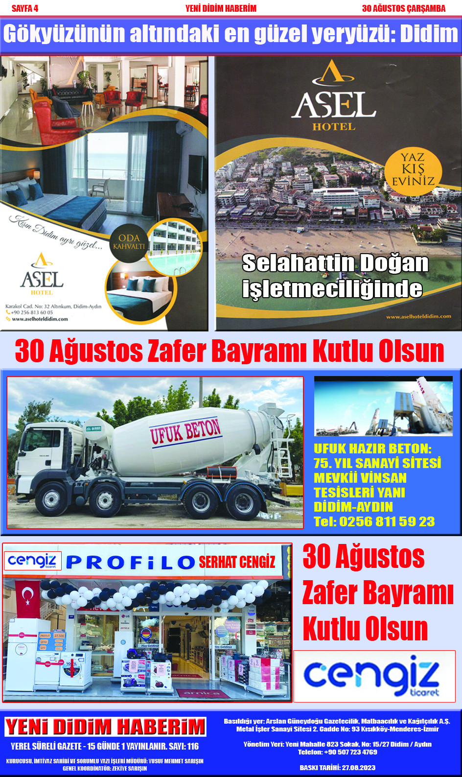Yeni Didim Haberim 30 Ağustos Sayısı Çıktı