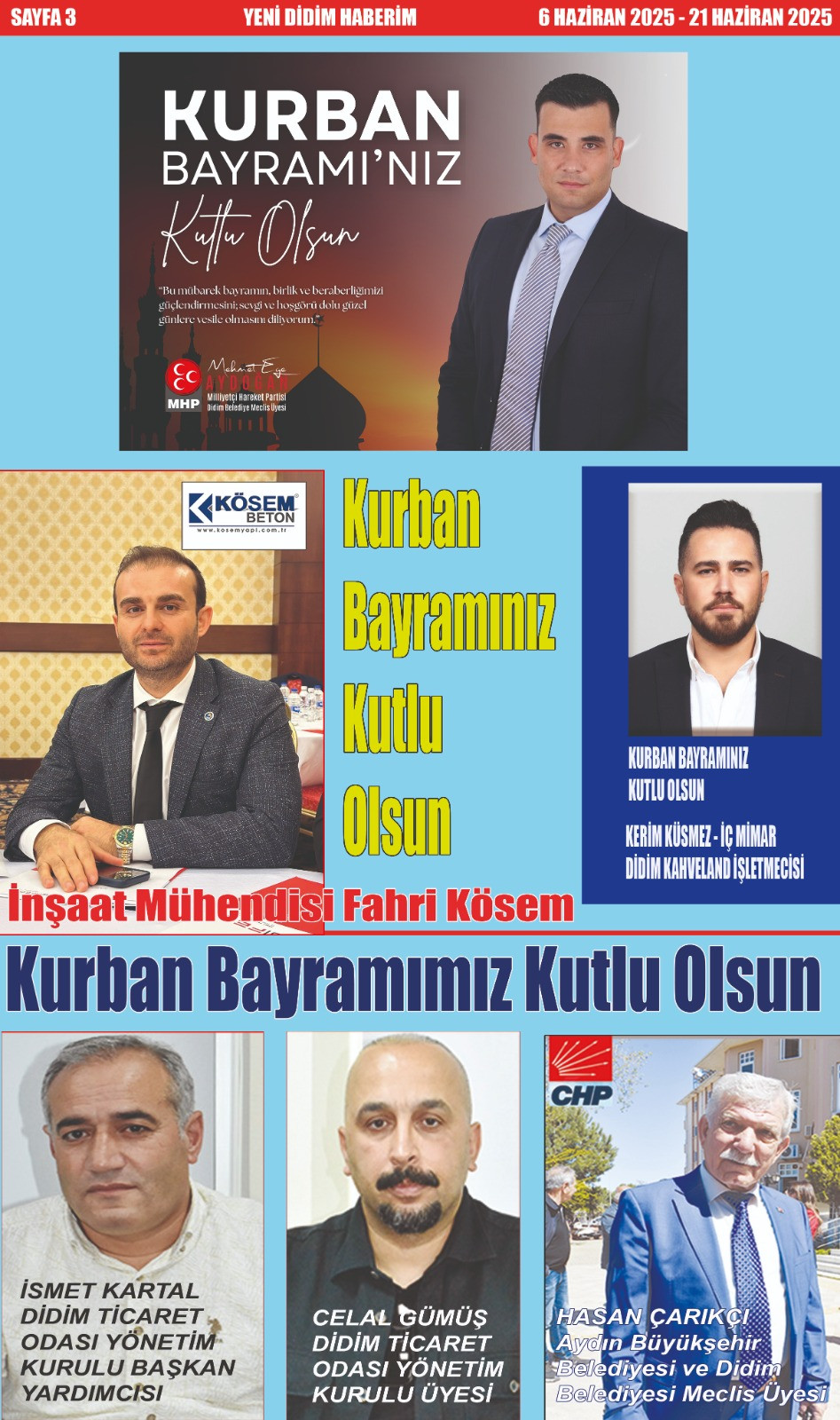 Yeni Didim Haberim Bayram Özel Sayısı Çıktı. Reklam verenlere teşekkür ederiz.
