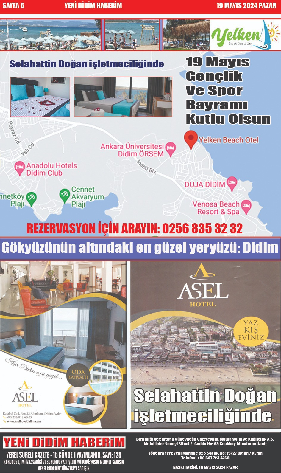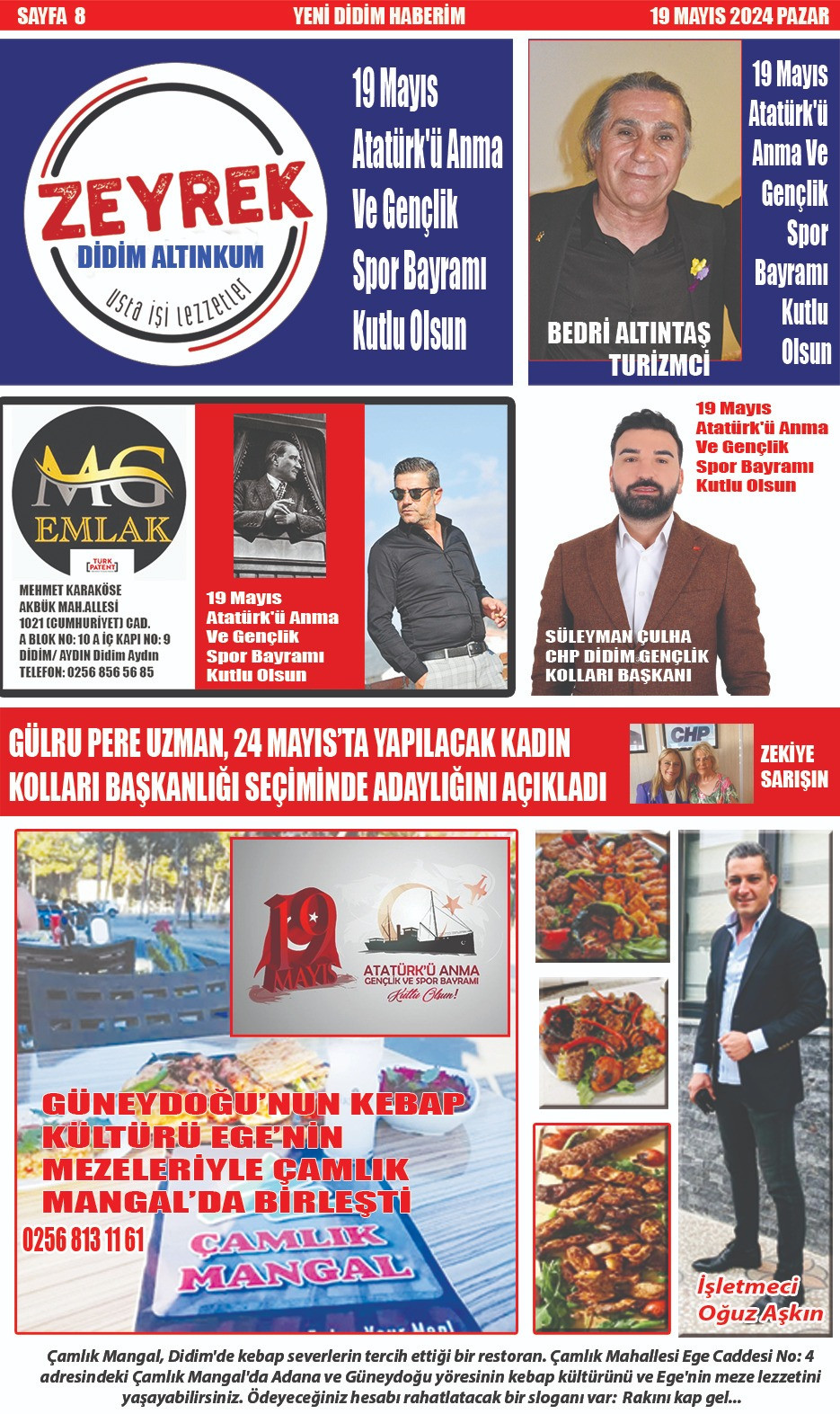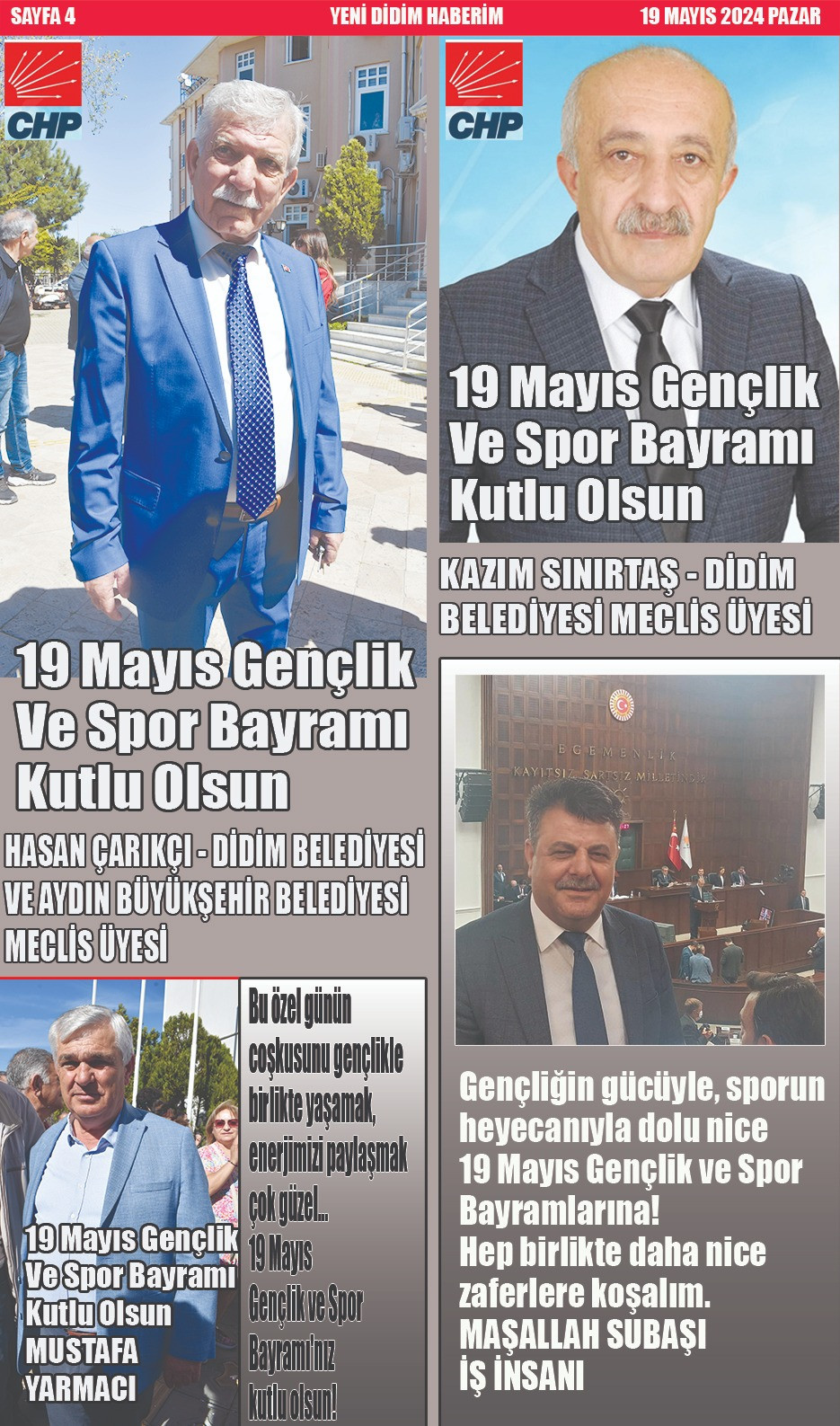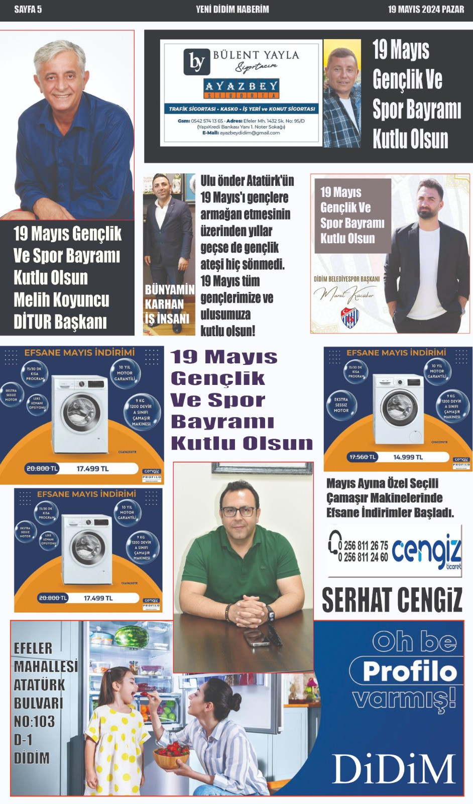 Yeni Didim Haberim Gazetesi 19 Mayıs Sayısı Çıktı. Kutlama mesajı yayınlayanlara ve reklam verenlere teşekkür ederiz.