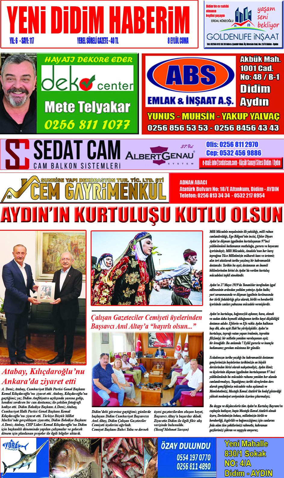 Yeni Didim Haberim Gazetesi Aydın'ın Kurtuluş Bayramı Özel Sayısı Çıktı