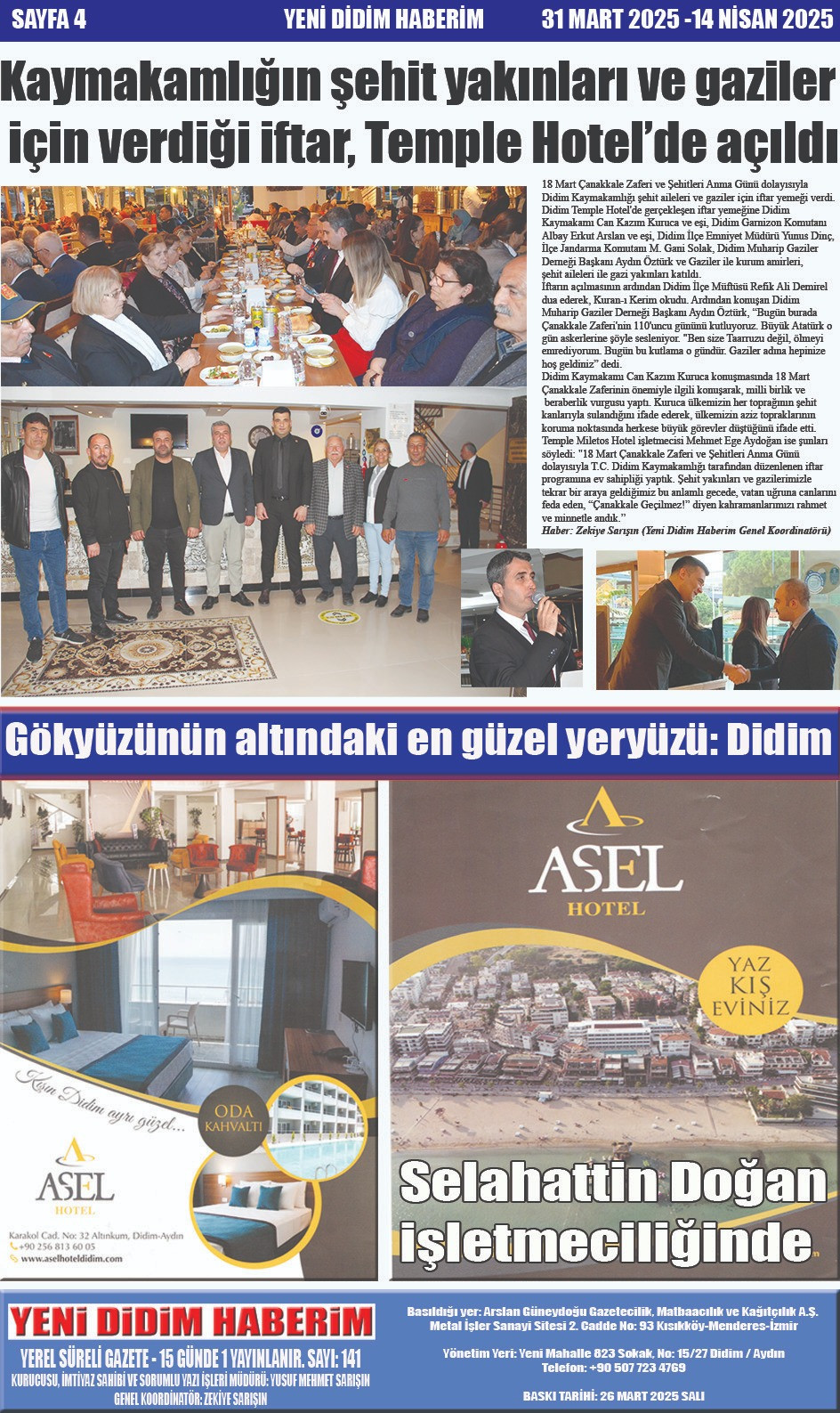 Yeni Didim Haberim Gazetesi Bayram Özel Sayısı çıktı.