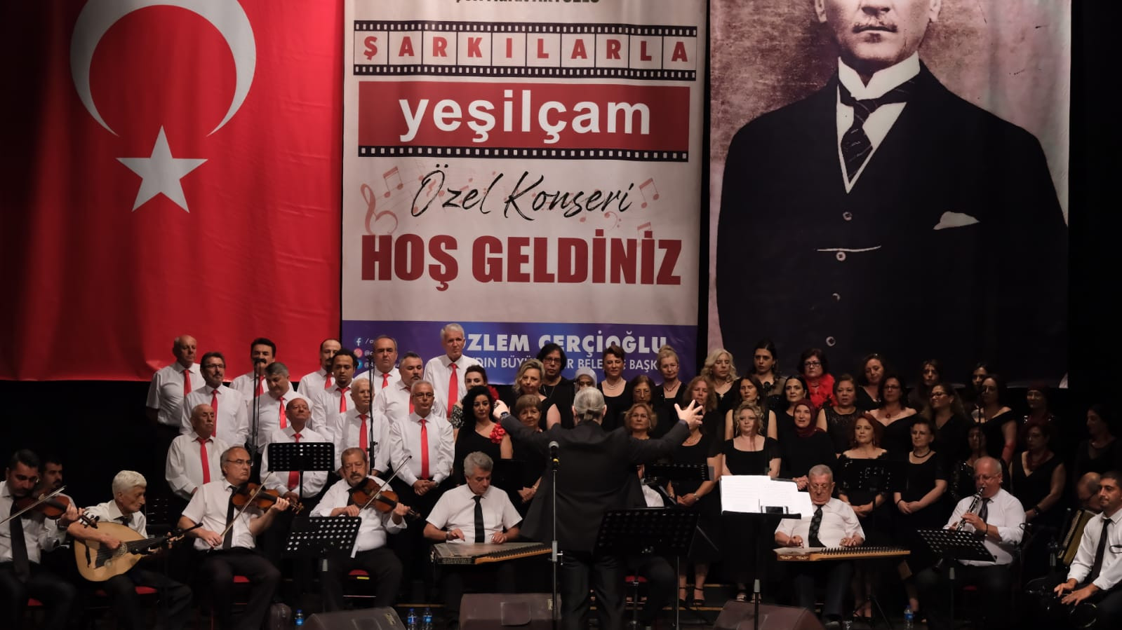 Şefliğini Murat Akyüzlü’nün yaptığı, 75 kişiden oluşan Aydın Büyükşehir Belediyesi Türk Sanat Müziği Korosu’nun, seslendirdiği ‘Şarkılarla Yeşilçam Konseri’ Aydınlıları geçmiş yılların güzellikleriyle dolu bir yolculuğa çıkardı.