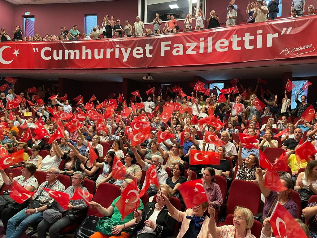 Konserin kapanışında söylenen İzmir Marşı’na dinleyicilerin bayraklarla birlikte eşlik etmesi renkli bir görüntüye sahne oldu.
