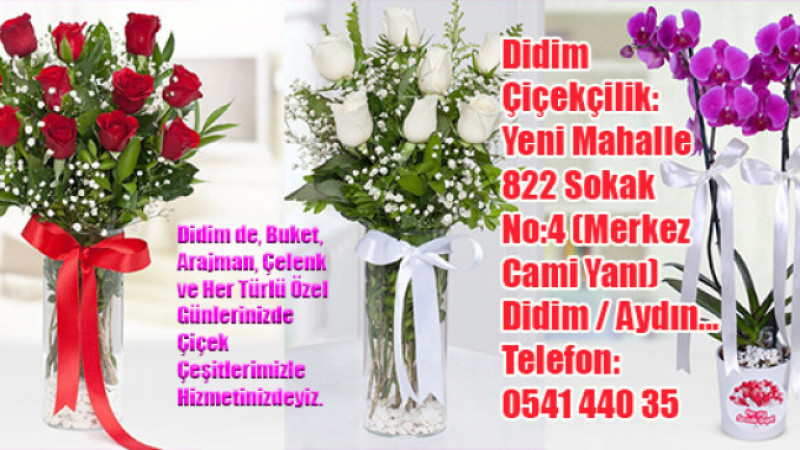 Didim Çiçekçilik: Yeni Mahalle 822 Sokak No:4 (Merkez Cami Yanı) Didim / Aydın... Telefon: 0 541 440 35 35