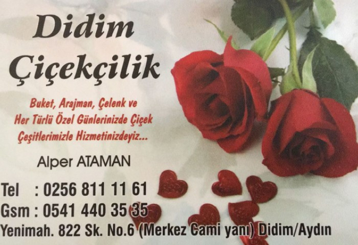 Didim Çiçekçilik: Yeni Mahalle 822 Sokak No:4 (Merkez Cami Yanı) Didim / Aydın... Telefon: 0 541 440 35