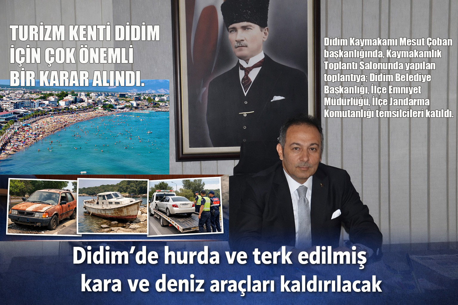 Didim’de kamuya açık alanlarda bulunan hurda ve/veya terk edilmiş araçların oluşturduğu çevre ve görüntü kirliliğinin önlenmesi amacıyla önemli bir toplantı gerçekleştirildi.