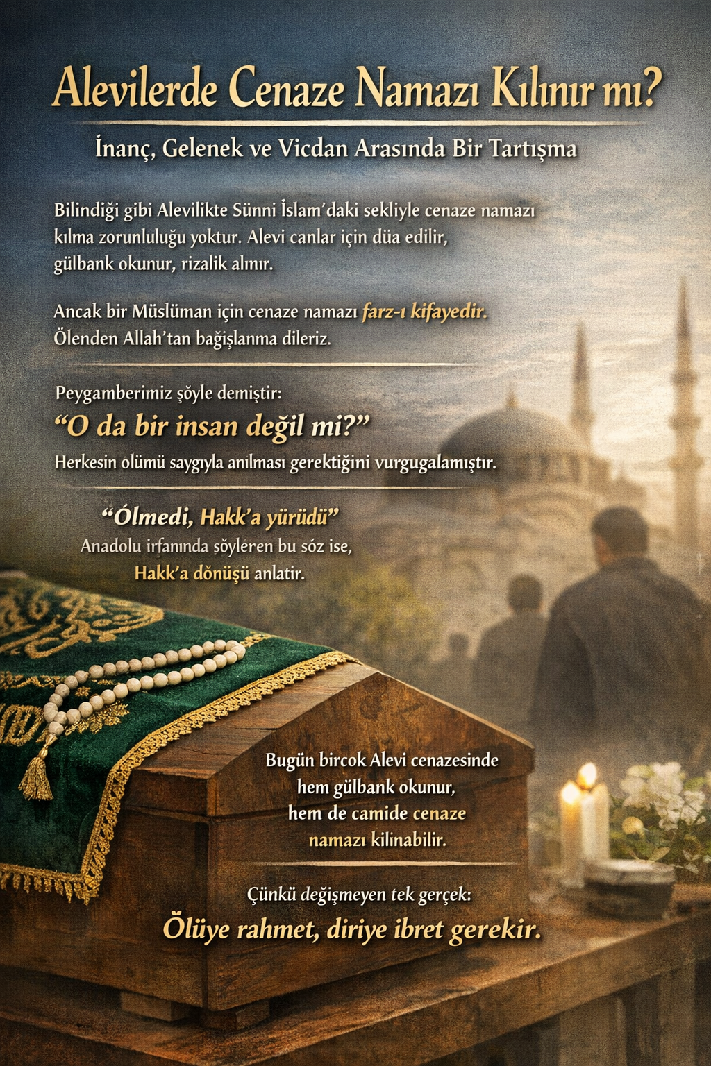 Toplumda zaman zaman bazı konular vardır ki yalnızca bir ibadet meselesi olmaktan çıkar, inanç, gelenek ve vicdanın kesiştiği bir tartışma haline gelir. Alevilerde cenaze namazı konusu da bunlardan biridir.