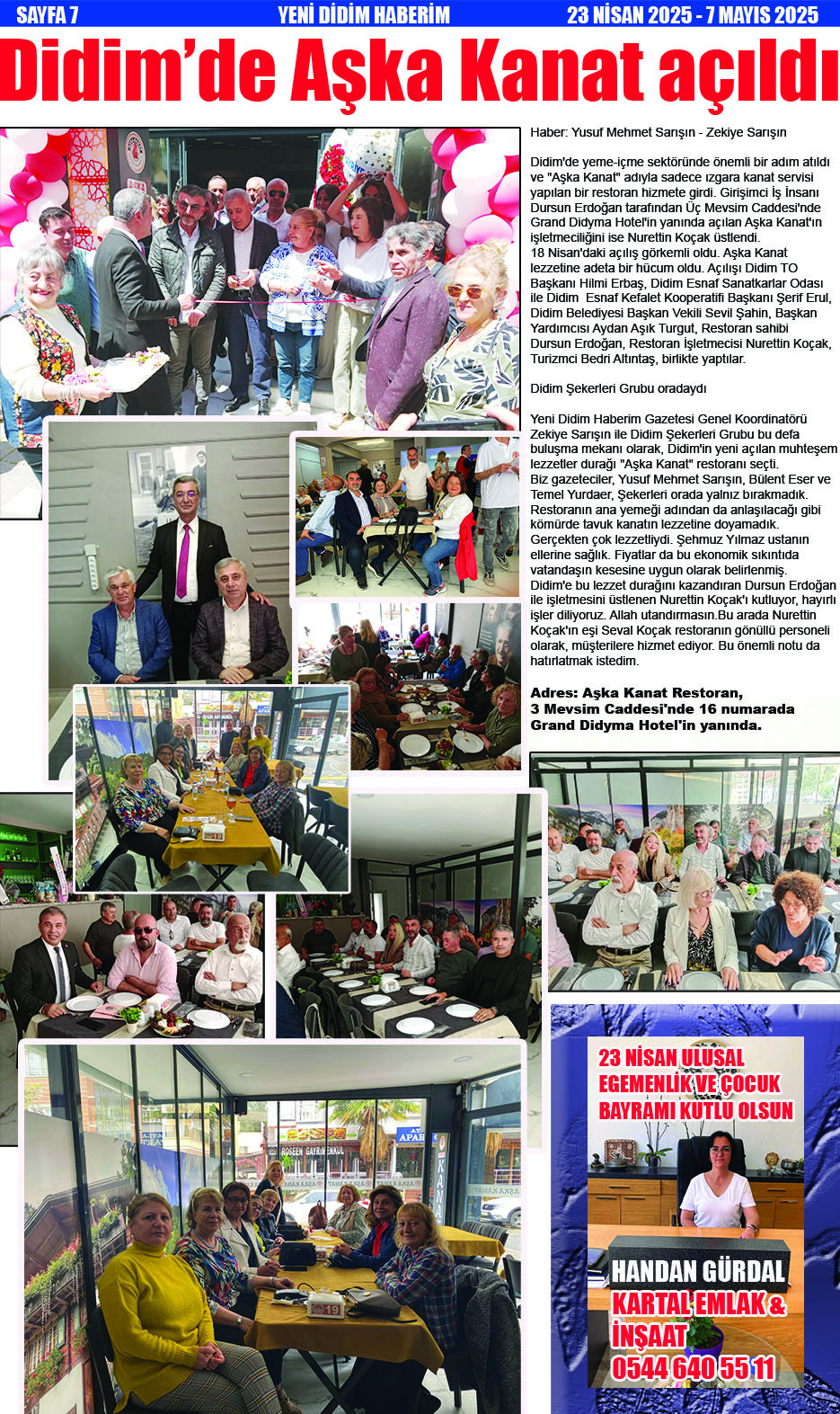 Yeni Didim Haberim Gazetesi Genel Koordinatörü Zekiye Sarışın ile Didim Şekerleri Grubu bu defa buluşma mekanı olarak, Didim'in yeni açılan muhteşem lezzetler durağı "Aşka Kanat" restoranı seçti.