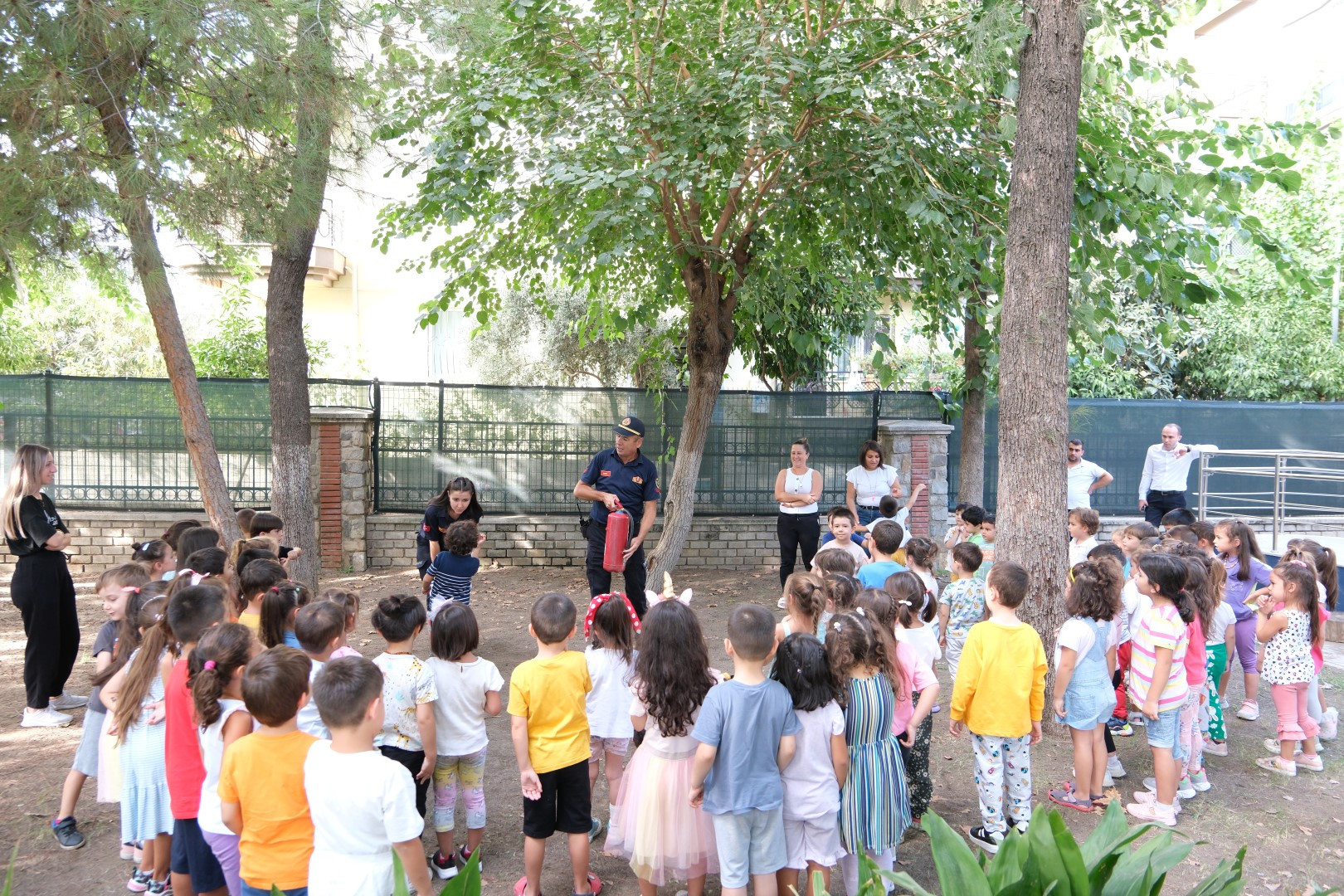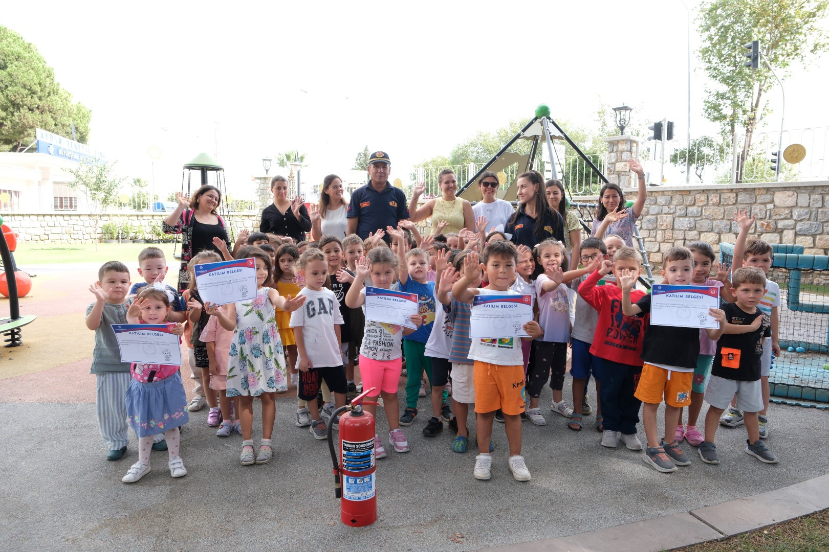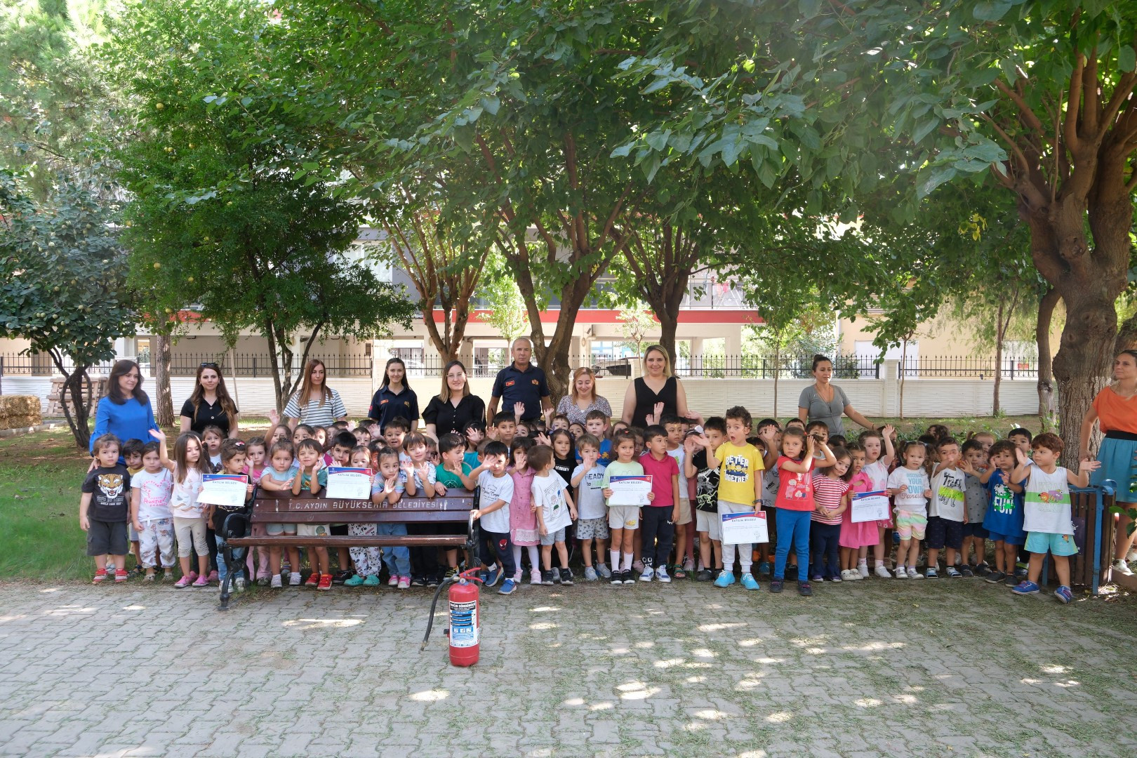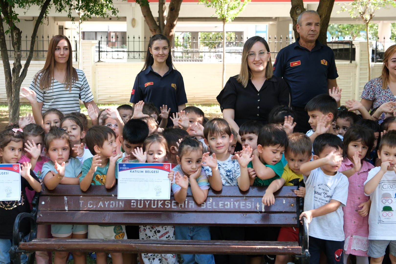 Aydın Büyükşehir Belediyesi Çocuk Gelişim Merkezi öğrencilerinden Elif Bakkal, “Bugün yangın durumunda hemen 112’yi aramam gerektiğini öğrendim. Annemize ve babamıza haber vermem gerektiğini öğrendim. Işık ve çakmakla oynamak yangına sebep oluyormuş. Bunlarla oynanamamak gerektiğini öğrendim”dedi. Eğitim sonunda çocuklara katılım sertifikası da verildi.