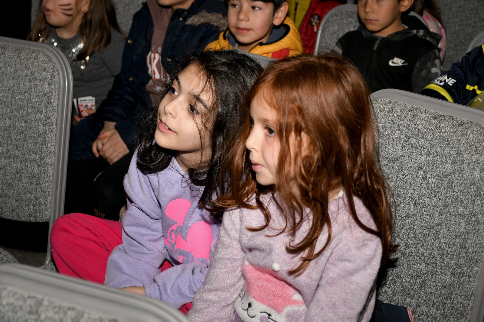 Kahramanmaraş merkezli depremlerin ardından geçici olarak Kuşadası'nda konaklatılan depremzede ailelerin çocukları için bir sinema etkinliği düzenlendi.