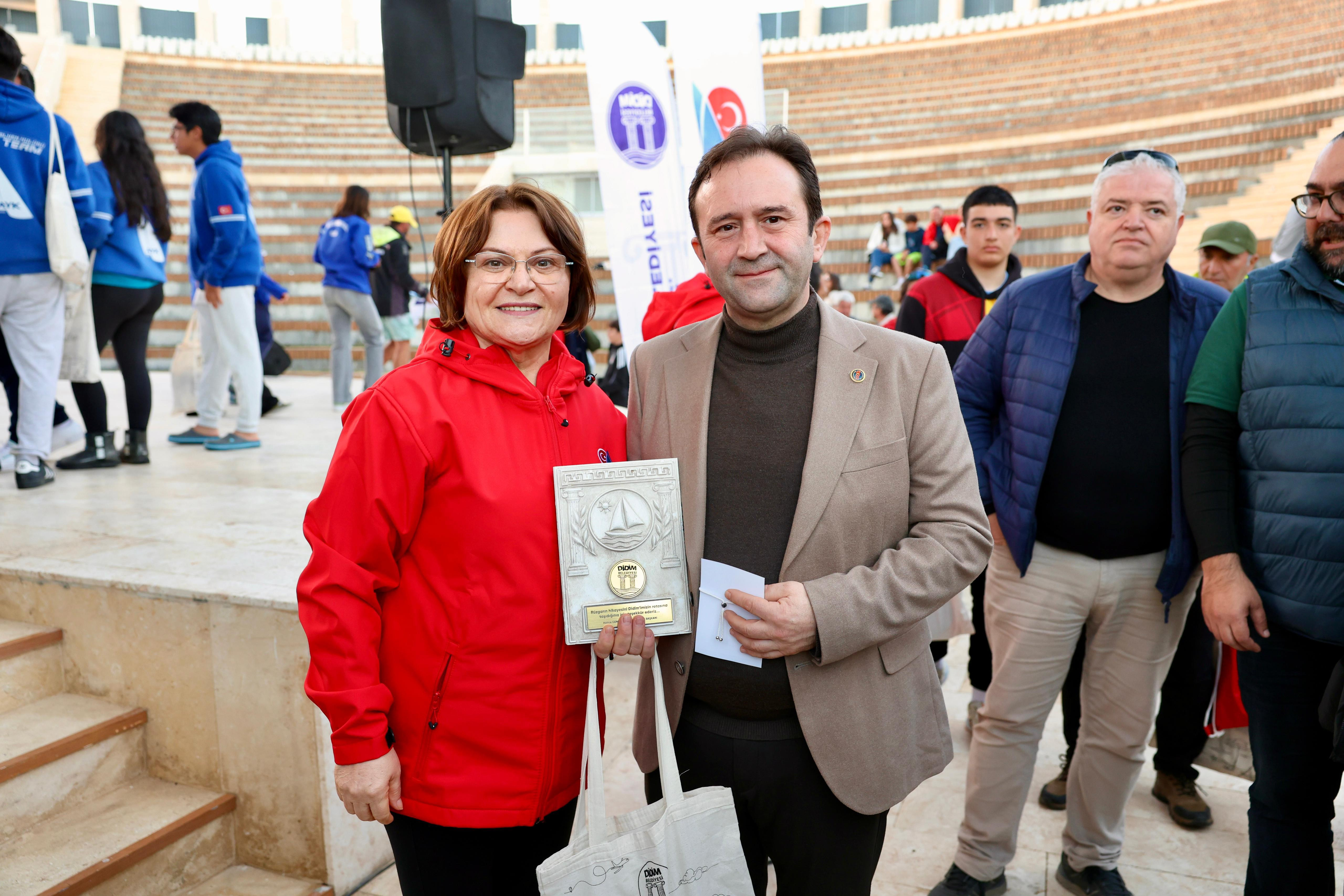 Yarışlarda dereceye giren sporcuların madalyaları, Didim Belediye Başkanı Hatice Gençay tarafından takdim edildi.